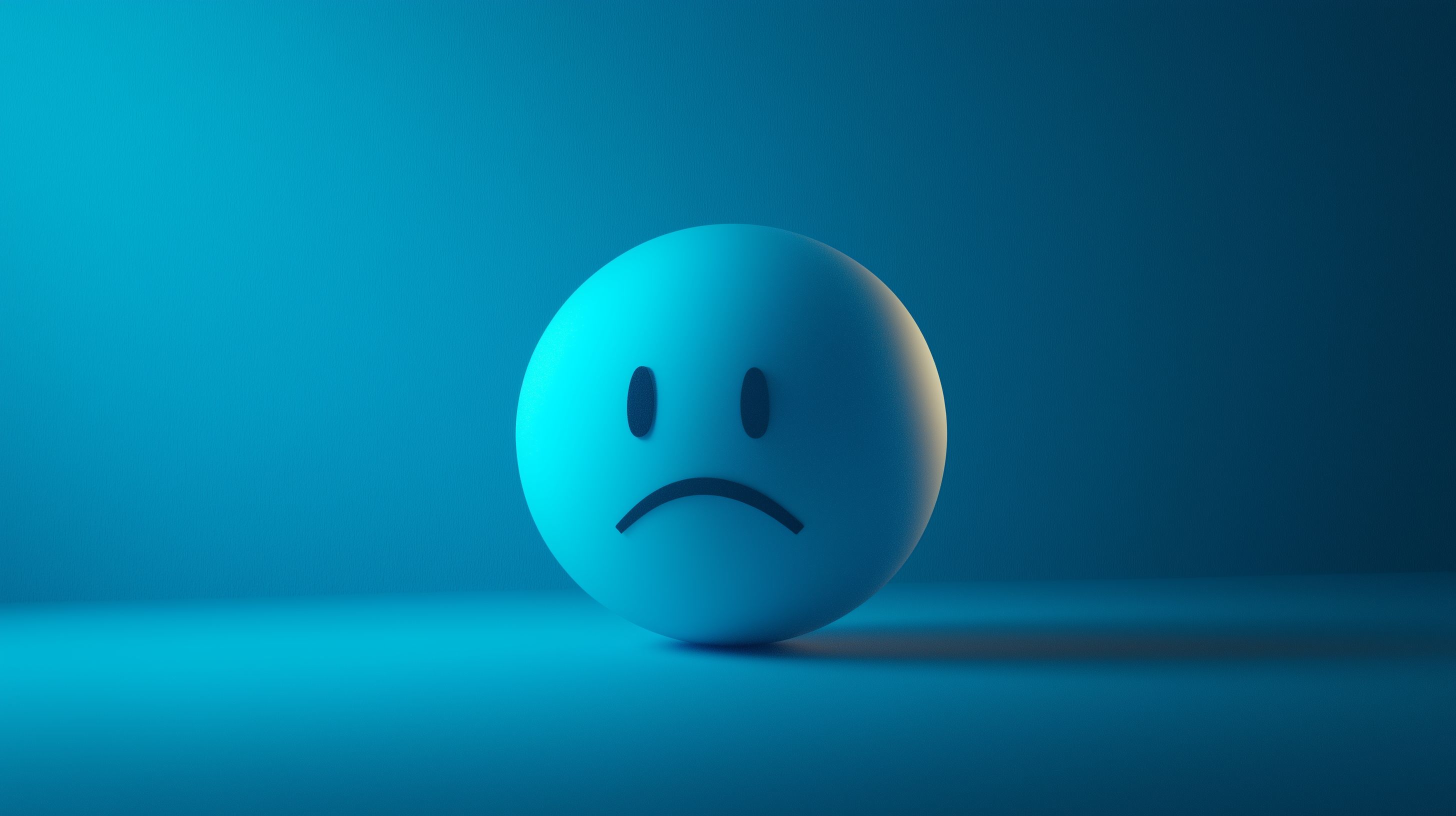 Dieses Bild zeigt einen traurigen blauen Smiley-Emoji, der vor einem einfarbigen, minimalistischen blauen Hintergrund platziert ist. Der Gesichtsausdruck des Smileys vermittelt Gefühle von Traurigkeit, Melancholie und Niedergeschlagenheit. Die Komposition ist sehr einfach und reduziert, was den Fokus auf den Ausdruck des Gesichts lenkt. Dieses kostenlose Stockfoto in hoher Auflösung eignet sich hervorragend für den Einsatz in Blogs, Newslettern, Social-Media-Posts oder Werbematerialien, die sich mit Themen wie Emotionen, mentale Gesundheit oder Stimmungsschwankungen befassen. Es steht unter der Creative-Commons-Lizenz zur freien Verwendung zur Verfügung.