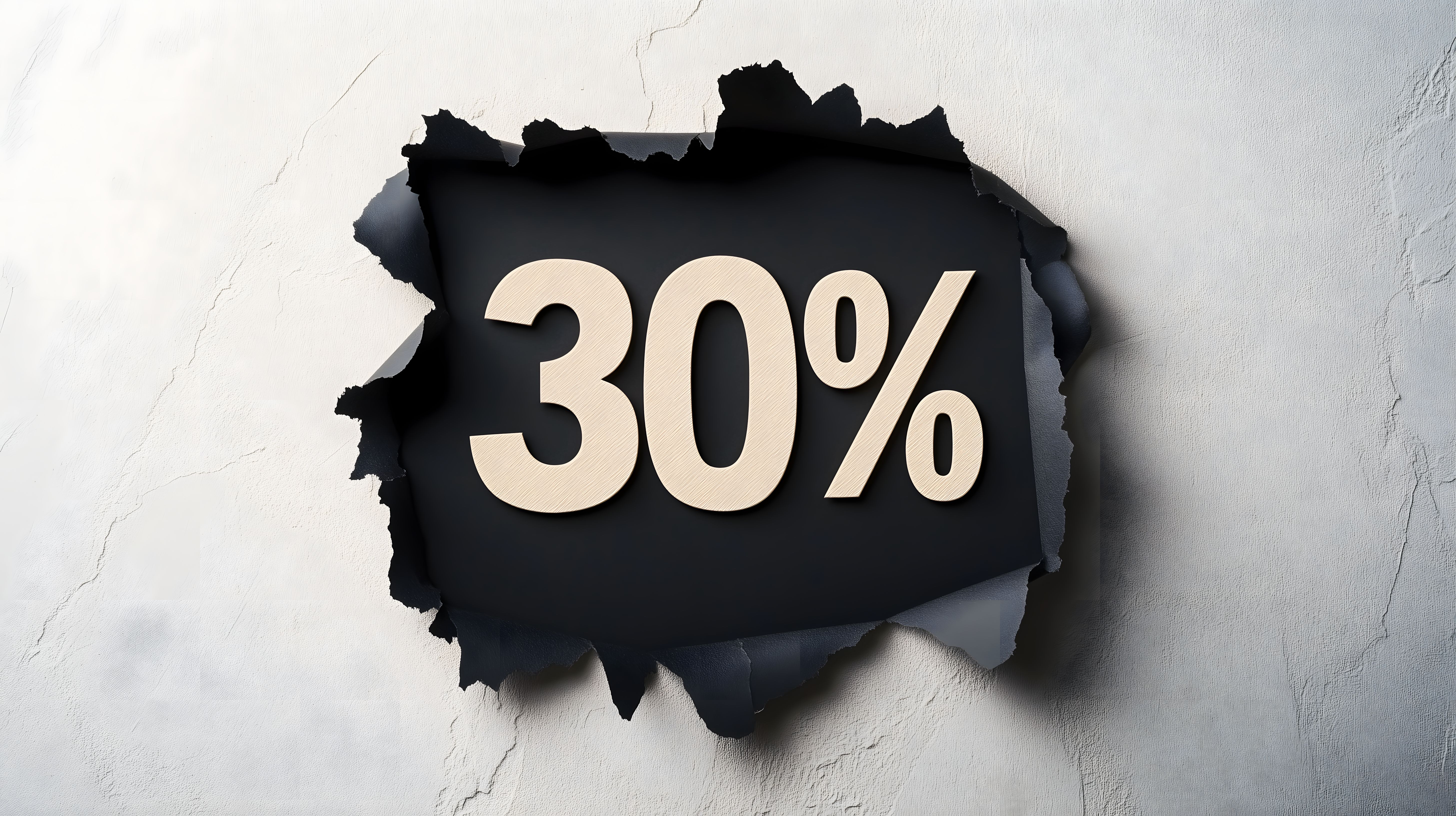 Das Bild zeigt einen schwarzen Hintergrund, der aufreißt, um einen weißen, großen 30%-Rabatt-Schriftzug zu offenbaren. Die Zerrissenheit des Papiers verleiht dem Motiv eine dynamische und auffallende Optik, die die Aufmerksamkeit auf das attraktive Angebot lenkt. Dieses Stockfoto eignet sich ideal für Werbekampagnen, Blogbeiträge, Newsletter oder Social-Media-Posts, die Sonderangebote oder Rabattaktionen bewerben. In hoher Auflösung und unter einer Creative-Commons-Lizenz verfügbar, lässt sich das Bild kostenfrei für verschiedenste Projekte einsetzen.