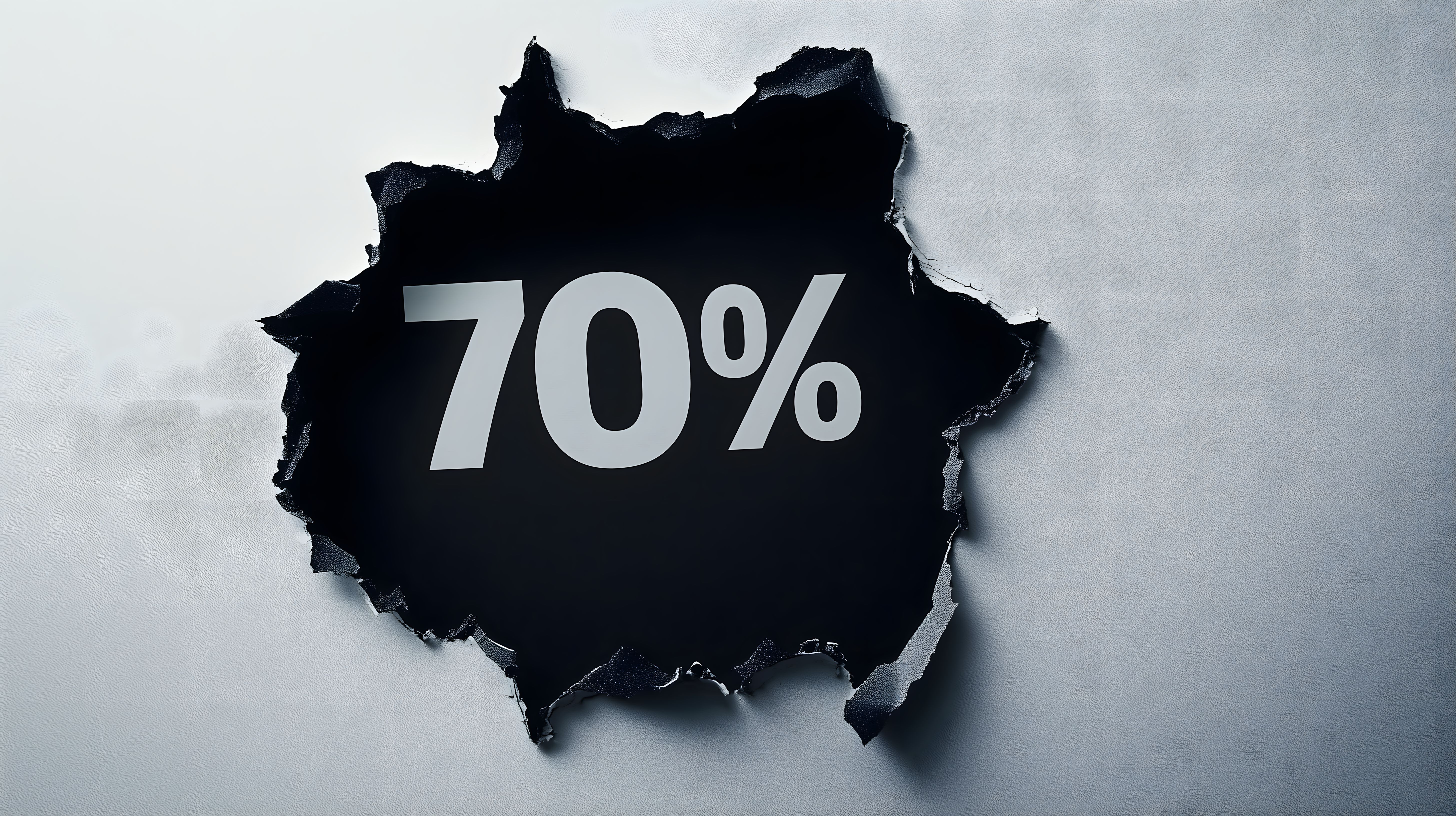 Dieses Bild zeigt einen schwarzen Hintergrund, auf dem ein zerrissenes Papierstück mit der Aufschrift '70%' zu sehen ist. Der Kontrast zwischen dem dunklen Hintergrund und dem weißen Schriftzug erzeugt eine starke visuelle Wirkung. Das Bild könnte ideal für Werbematerialien, Blogbeiträge oder Social-Media-Posts zum Thema Rabatte, Verkäufe oder Sonderangebote eingesetzt werden. Dieses hochauflösende und kostenlose Stockfoto ist unter der Creative-Commons-Lizenz verfügbar und kann für verschiedene Projekte genutzt werden.