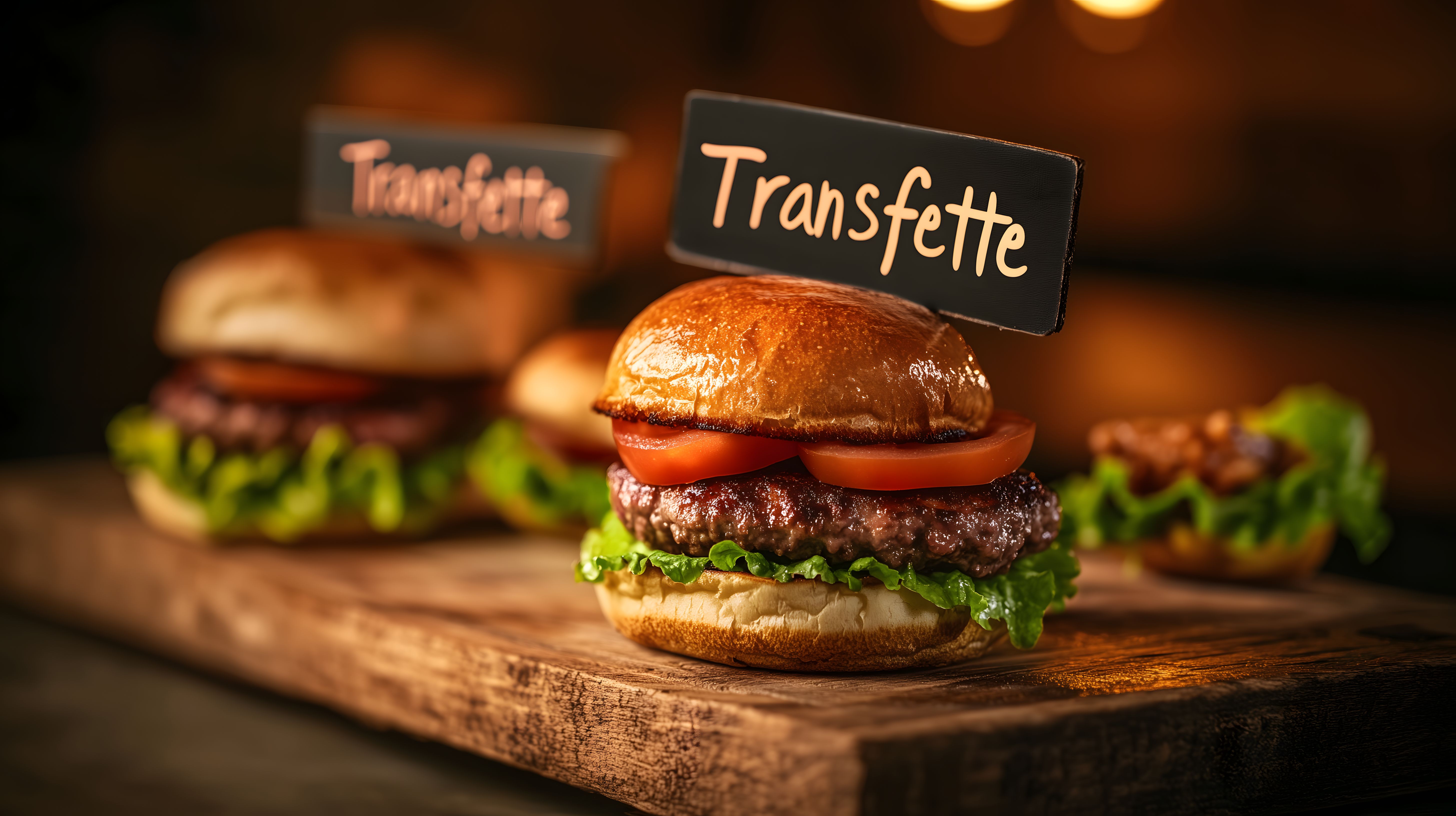 Das Bild zeigt zwei appetitliche Burger auf einem rustikalen Holzbrett. Die Burger sind mit saftigem Fleisch, frischen Tomaten, knackigem Salat und einem goldbraunen Brötchen belegt. Der Kontrast zwischen dem dunklen Holzbrett und den leuchtenden Farben der Zutaten sowie die stimmungsvolle Beleuchtung verleihen dem Foto eine einladende, appetitanregende Atmosphäre. Dieses hochwertige Stockfoto eignet sich hervorragend für den Einsatz in Blogbeiträgen, Newslettern, Social-Media-Kanälen oder Werbekampagnen rund um das Thema Essen und Gastronomie. Das Bild ist in hoher Auflösung und unter der Creative-Commons-Lizenz frei verfügbar.
