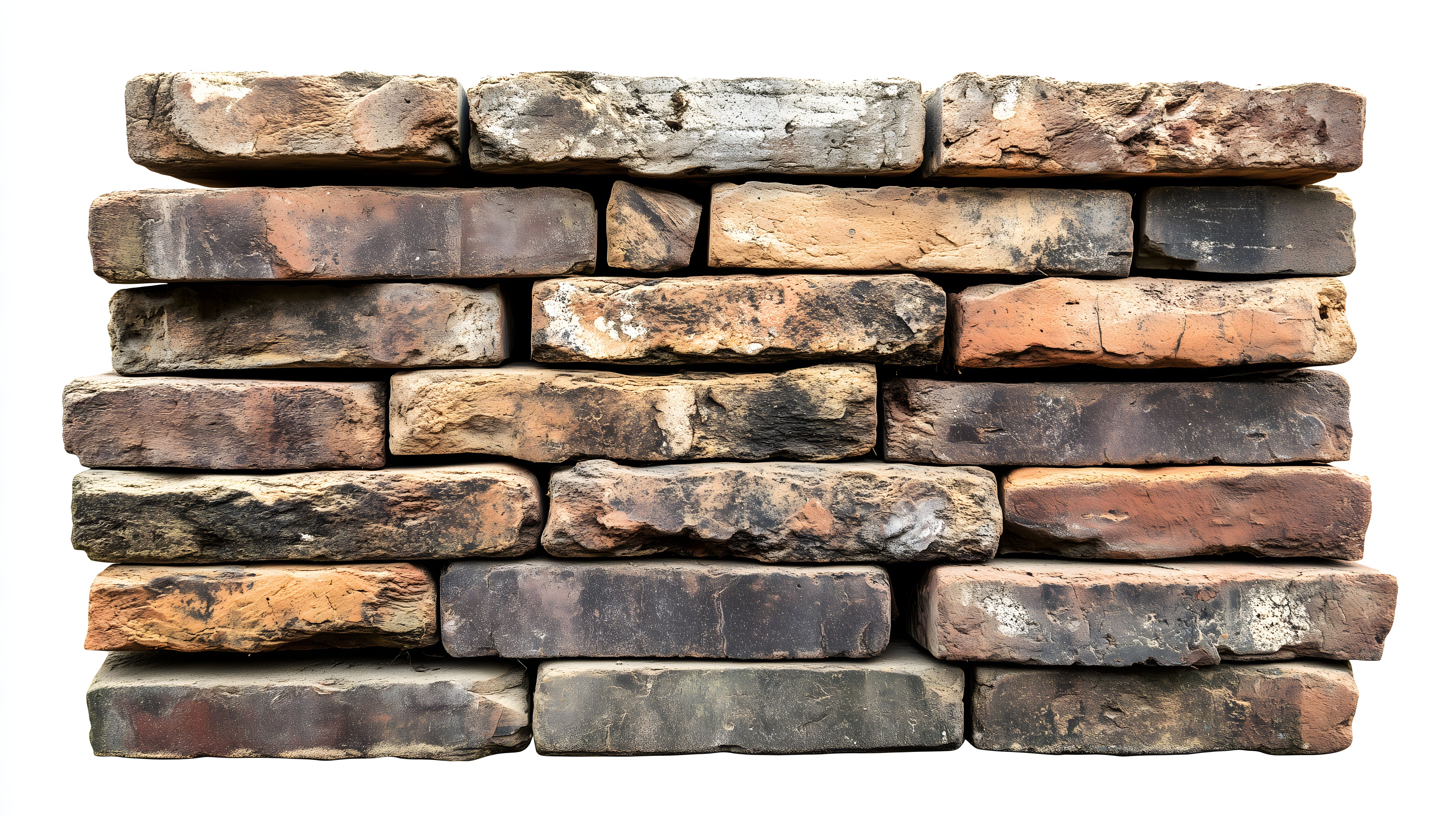 Dieses Stockfoto zeigt einen Stapel alter, rustikaler Ziegelsteine vor weißem Hintergrund. Die Steine haben eine raue, unebene Oberfläche in verschiedenen Braun- und Rottönen, die eine natürliche, industrielle Ästhetik vermitteln. Das Bild eignet sich hervorragend als Hintergrund oder Textur für Designs, Layouts und Präsentationen in den Bereichen Architektur, Baugewerbe, Vintage und Industrie. Als hochauflösendes Stockfoto unter einer Creative-Commons-Lizenz ist es kostenlos für private und kommerzielle Zwecke nutzbar.