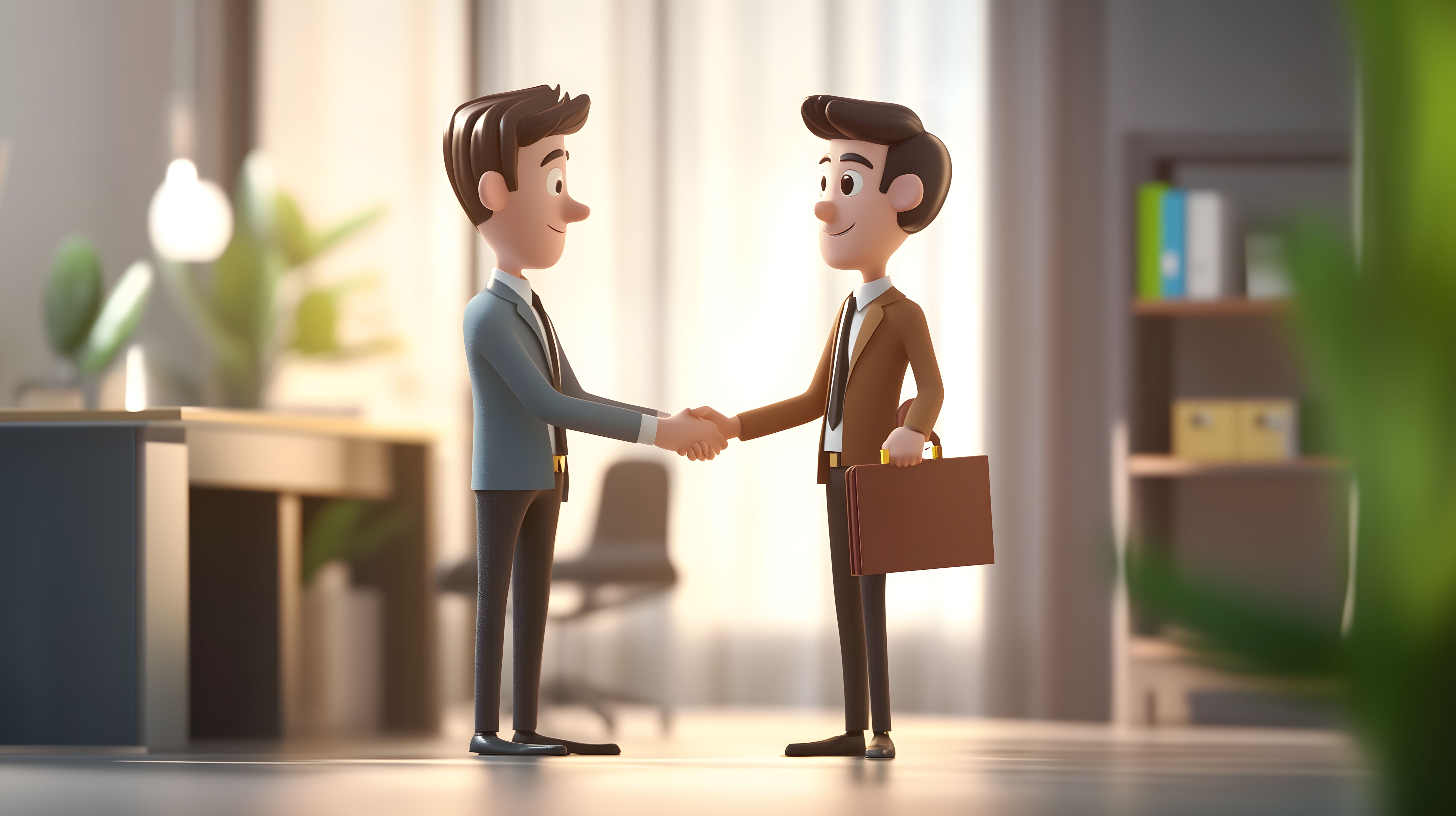 Dieses 3D-Cartoon-Bild zeigt zwei professionell gekleidete Männer, die sich im Büroumfeld die Hände schütteln. Die Szene vermittelt ein Gefühl von Teamwork, Partnerschaft und geschäftlichen Erfolg. Das hochwertige Stockfoto eignet sich hervorragend für die Verwendung in Blogs, Newslettern, Social-Media-Beiträgen oder Werbematerialien. Es ist in hoher Auflösung verfügbar und unter einer Creative-Commons-Lizenz kostenfrei nutzbar.