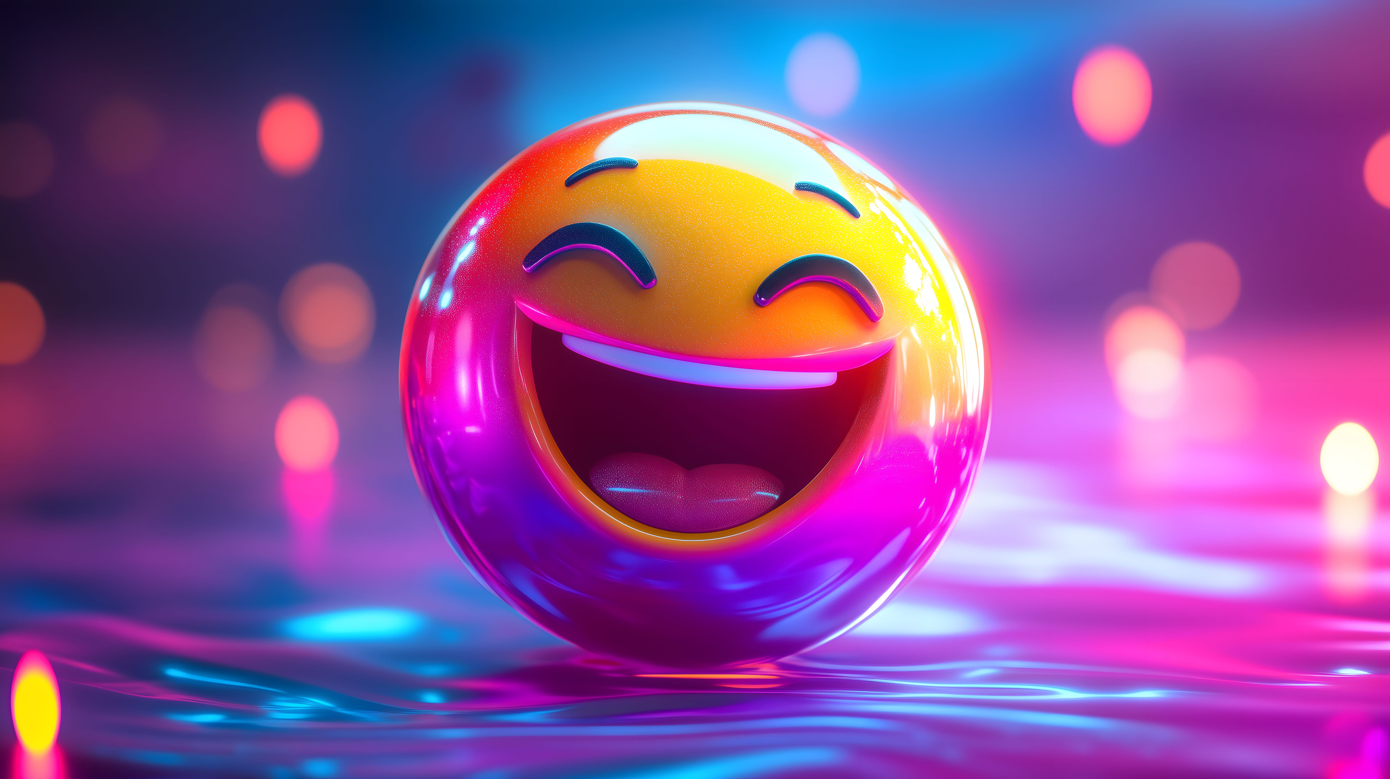 Dieses freudige digitale Emoji-Motiv präsentiert sich in einem Meer aus leuchtenden Neonfarben und abstrakten Lichtspiegelungen. Der strahlende, lachende Gesichtsausdruck verleiht dem Bild eine fröhliche, positive Ausstrahlung. Diese Illustration eignet sich hervorragend als Stockfoto für Beiträge in sozialen Medien, Newsletter-Designs oder Werbematerial. Das Bild ist in hoher Auflösung verfügbar und unter einer Creative-Commons-Lizenz für den kostenlosen Gebrauch lizenziert.