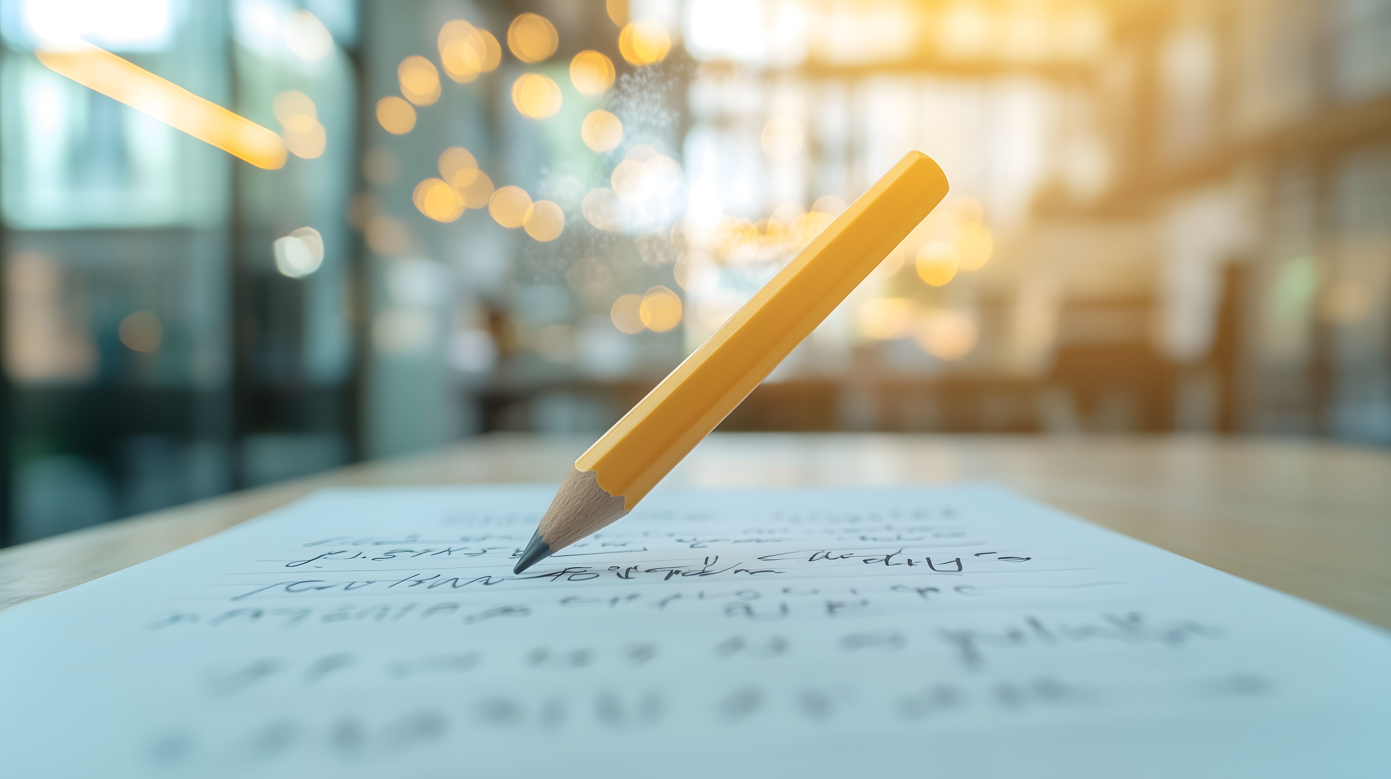 Das Bild zeigt eine handschriftliche Notiz auf einem Notizblock. Die Bleistiftspitze schwebt über der Schrift und scheint gerade einen Eintrag hinzuzufügen. Der Hintergrund ist weich fokussiert und lässt ein schönes Bokeh-Effekt entstehen, das eine warme, inspirierende Stimmung erzeugt. Das Motiv vermittelt eine Atmosphäre der Kreativität, Konzentration und Produktivität und eignet sich hervorragend für den Einsatz in Blogs, Newslettern oder Social-Media-Beiträgen zu Themen wie Büroorganisation, Arbeitsmotivation oder Ideenentwicklung. Dieses hochauflösende, kostenlose Stockfoto ist unter einer Creative-Commons-Lizenz verfügbar.