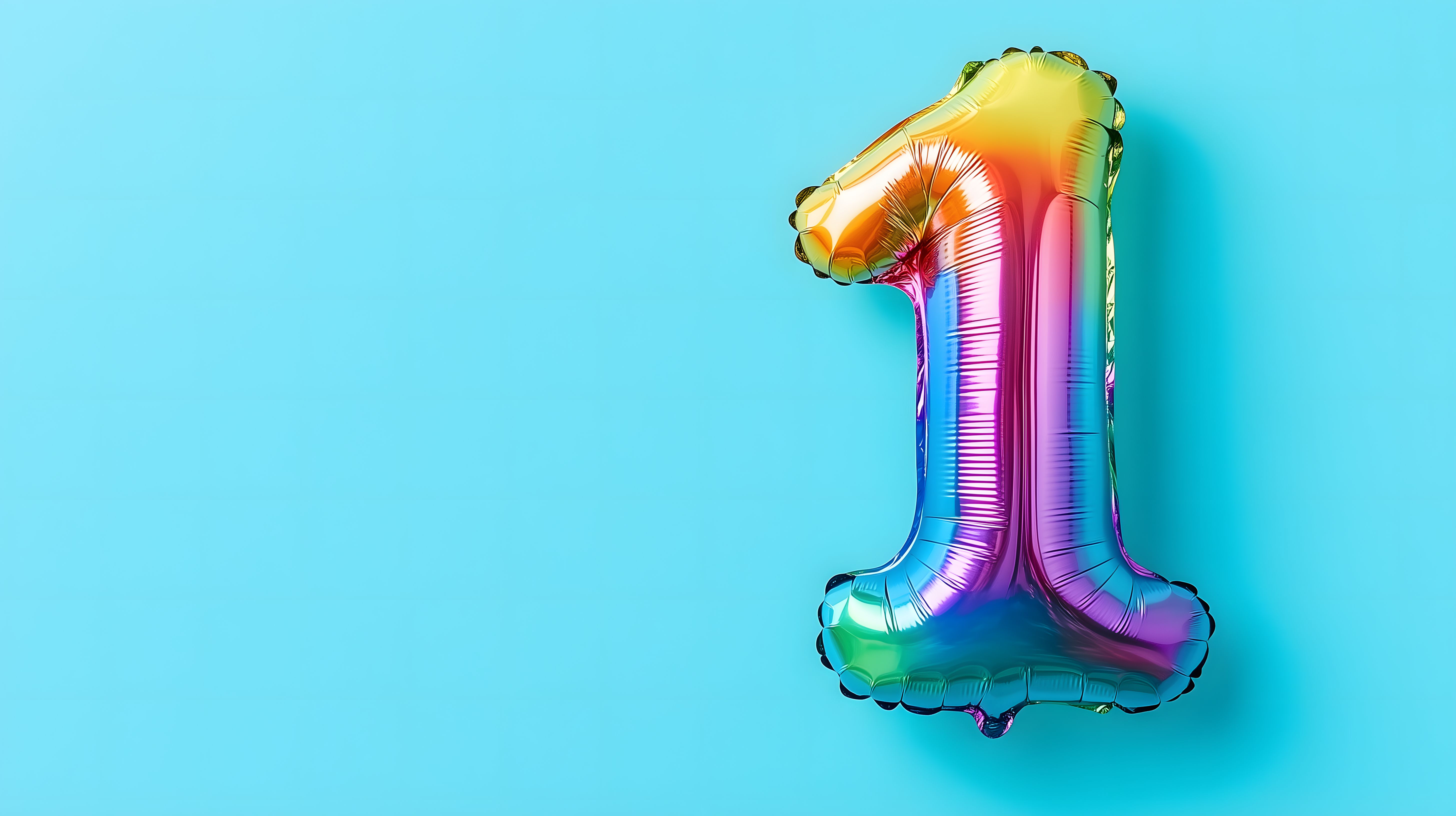 Das Bild zeigt einen großen, bunten Ballon in Form der Zahl 1 vor einem türkisfarbenen Hintergrund. Der Ballon schimmert in einem Farbverlauf von Gelb über Orange bis hin zu Violett, wodurch ein fröhlicher, festlicher Eindruck entsteht. Der Ballon ist ein ideales Motiv, um Geburtstage, Jubiläen oder andere Feierlichkeiten zu unterstreichen. Das Foto eignet sich hervorragend für die Verwendung in Blogs, Newslettern, Social-Media-Beiträgen oder Werbematerialien. Als hochwertiges, kostenloses Stockfoto unter Creative-Commons-Lizenz ist es vielseitig einsetzbar.