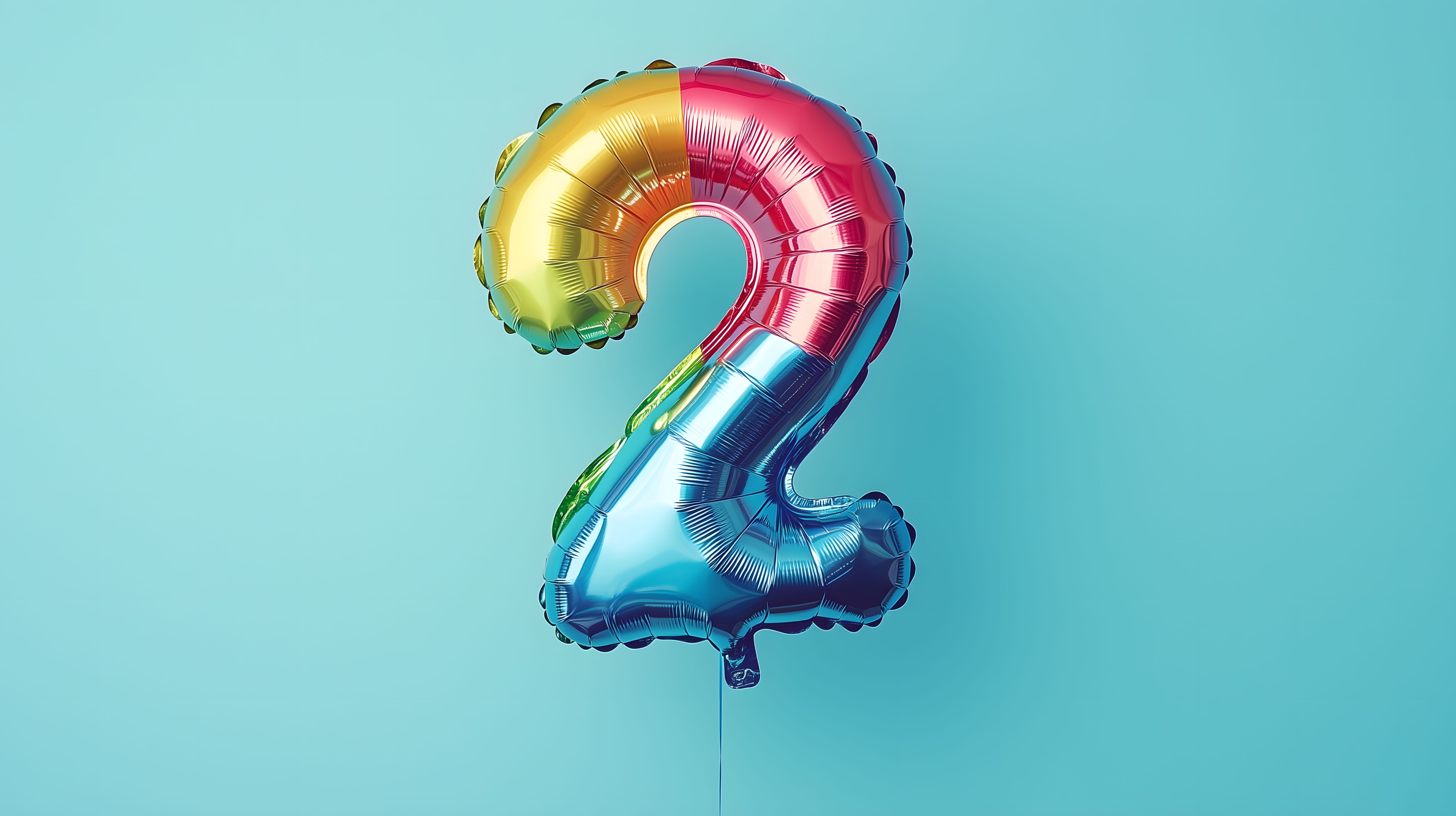 Dieses bunte, grafische Bild zeigt einen großen Zahlenballon in Form der Nummer 2 vor einem türkisfarbenen Hintergrund. Der Ballon besteht aus verschiedenfarbigen Segmenten in Pastelltönen wie Gelb, Grün, Rot und Blau, die den Eindruck eines Regenbogens erwecken. Das minimalistische Design, die klaren Formen und die strahlenden Farben machen das Foto zu einem perfekten Motiv für Geburtstagsdekorationen, Einladungskarten oder auch Social-Media-Posts zum zweiten Geburtstag. Als kostenloses Stockfoto in hoher Auflösung und unter Creative-Commons-Lizenz kann es vielfältig in unterschiedlichen Projekten und Anwendungen eingesetzt werden.