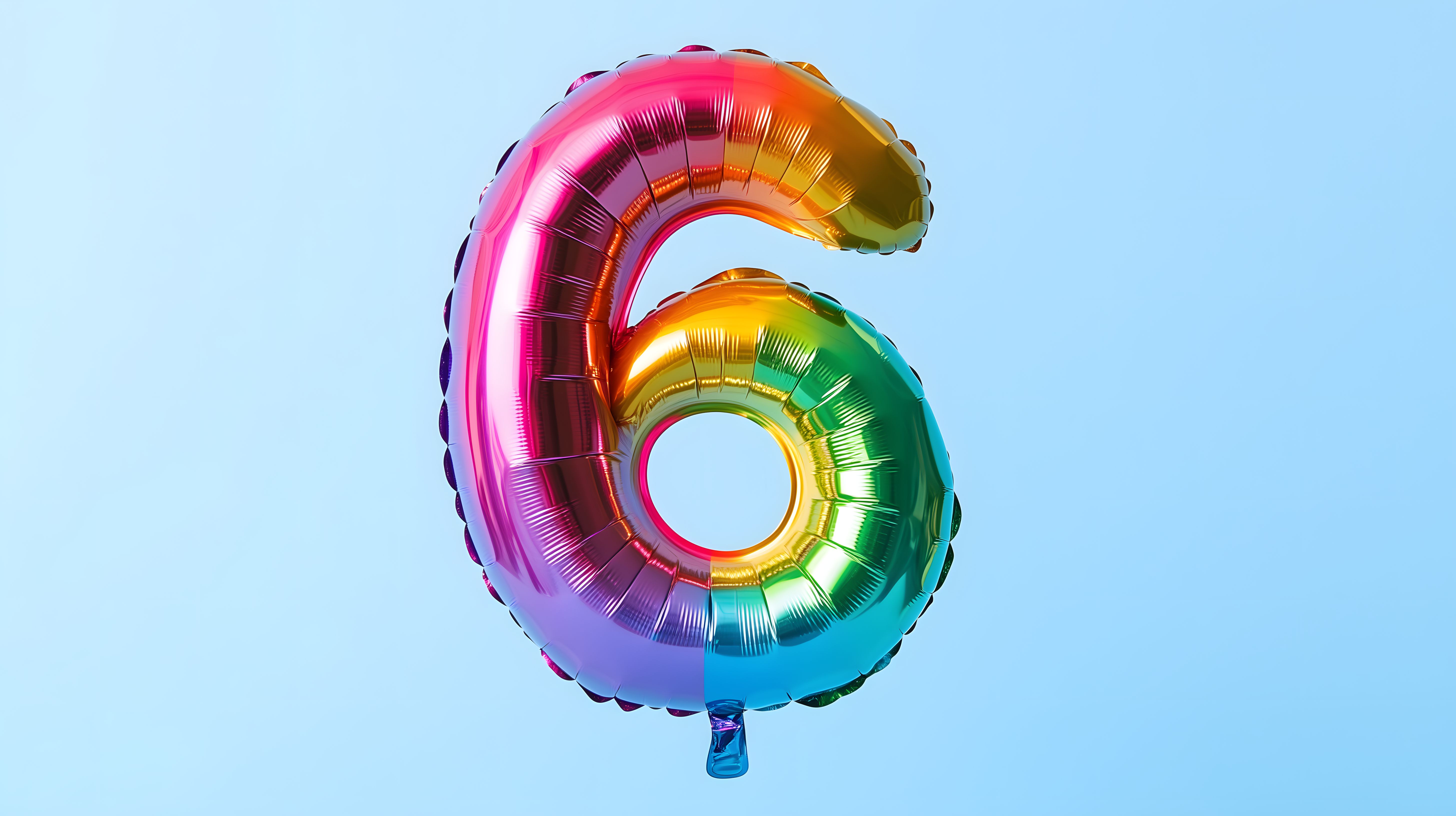 Dieses farbenfrohe Foto zeigt einen aufgeblasenen Folienballon in Form der Nummer 6. Der Ballon ist in einer Vielzahl von Regenbogenfarben gehalten - von Pink über Orange und Gelb bis hin zu Grün und Blau. Der Ballon hebt sich vor einem hellen, einfarbigen blauen Hintergrund ab und wirkt dadurch besonders eindrucksvoll. Dieses Stockfoto eignet sich perfekt für die Verwendung in Blogs, Newslettern, Social-Media-Beiträgen oder Werbematerialien rund um Geburtstage, Jubiläen oder sonstige Feierlichkeiten. Das hochauflösende Foto steht unter einer Creative-Commons-Lizenz kostenfrei zur Verfügung.