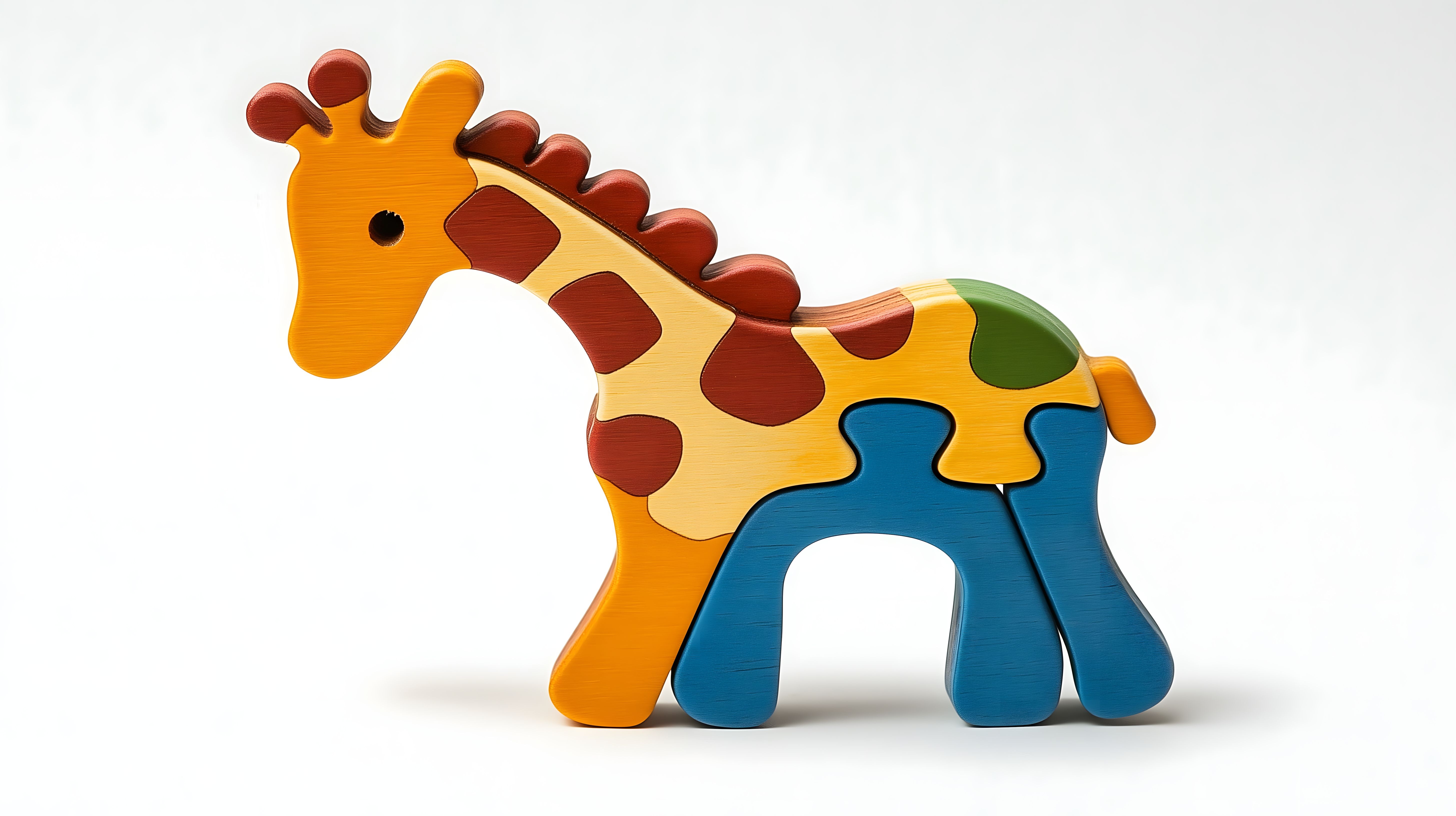Dieses bunte Holzpuzzle in Form einer Giraffe ist ein kreatives und lernförderndes Spielzeug für Kinder. Die Giraffe ist aus mehreren bunten, geometrischen Holzteilen zusammengesetzt, die durch ihre leuchtenden Farben und einfache Form zum Spielen, Sortieren und Entdecken einladen. Das Foto zeigt das Spielzeug in Draufsicht auf weißem Hintergrund, wodurch die Details und Formen besonders gut zur Geltung kommen. Als hochwertiges Stockfoto unter Creative-Commons-Lizenz eignet sich das Bild hervorragend für die Verwendung in Blogs, Newslettern oder Werbematerialien rund um Kinderspielzeug, Kreativität und frühkindliche Entwicklung.