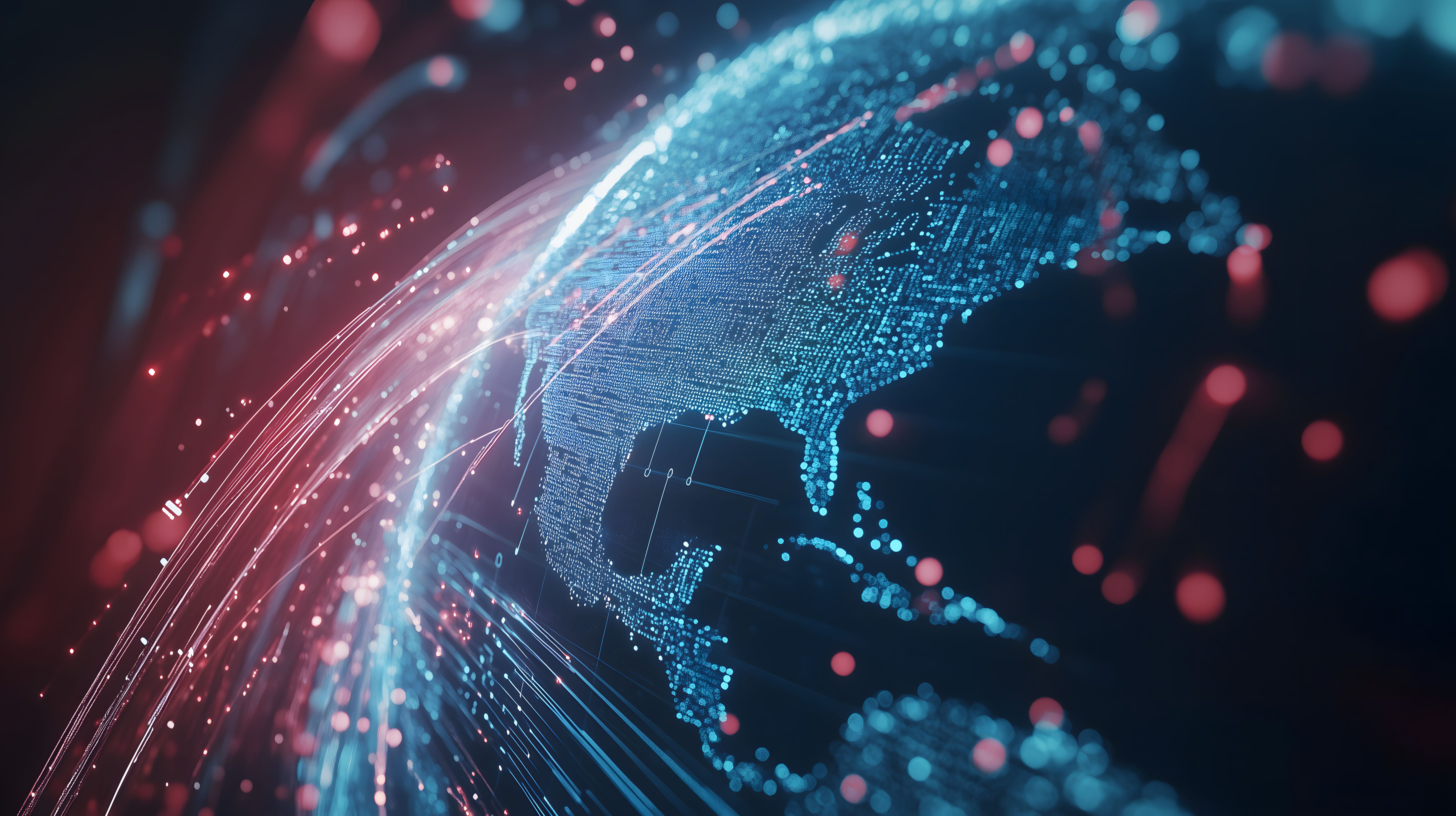 Dieses faszinierende Stockfoto zeigt eine 3D-Darstellung eines Globus, umgeben von einem beeindruckenden Netzwerk aus leuchtenden Datenstromlinien und Kugeln. Die Szene vermittelt einen futuristischen, technologischen Eindruck und visualisiert den Informationsaustausch und die Vernetzung unserer globalisierten Welt. Das Bild eignet sich hervorragend für den Einsatz in Blogbeiträgen, Newsletter-Layouts oder Social-Media-Posts, die sich mit Themen wie Technologie, künstliche Intelligenz, Energienetze oder digitale Infrastruktur beschäftigen. Dieses hochauflösende, lizenzfreie Stockfoto steht unter einer Creative-Commons-Lizenz zur Verfügung und kann kostenlos genutzt werden.
