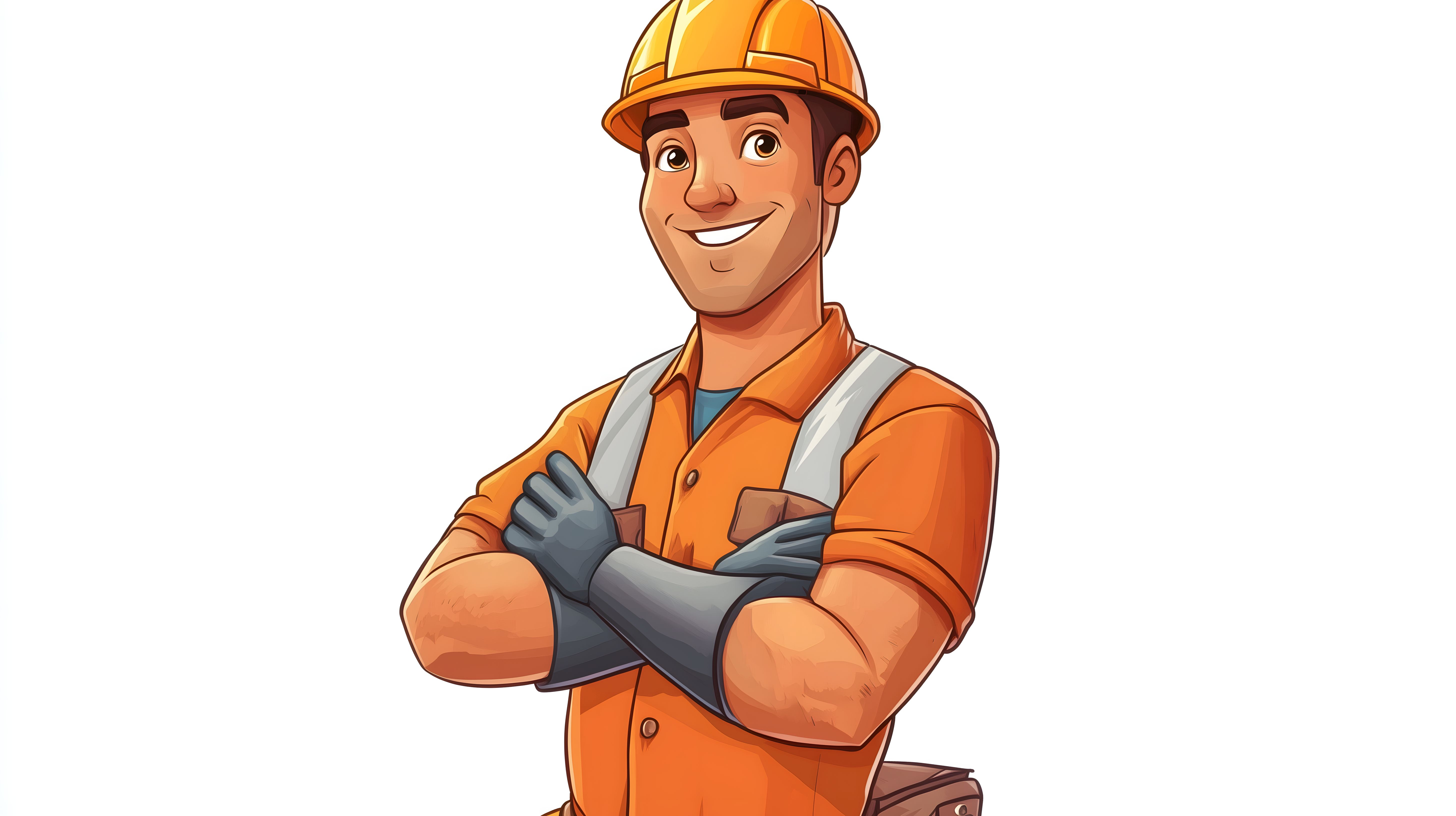Diese fröhliche, hochauflösende Cartoon-Illustration zeigt einen lächelnden Bauarbeiter in orangefarbener Schutzausrüstung. Er steht mit verschränkten Armen und hat eine positive, kompetente Ausstrahlung. Dieses Stockfoto eignet sich hervorragend für den Einsatz in Blogbeiträgen, Newslettern, Werbekampagnen und Social-Media-Posts, die das Thema Handwerk, Industrie oder Arbeit behandeln. Das Bild ist unter einer Creative-Commons-Lizenz verfügbar und kann kostenlos für vielfältige Zwecke genutzt werden.