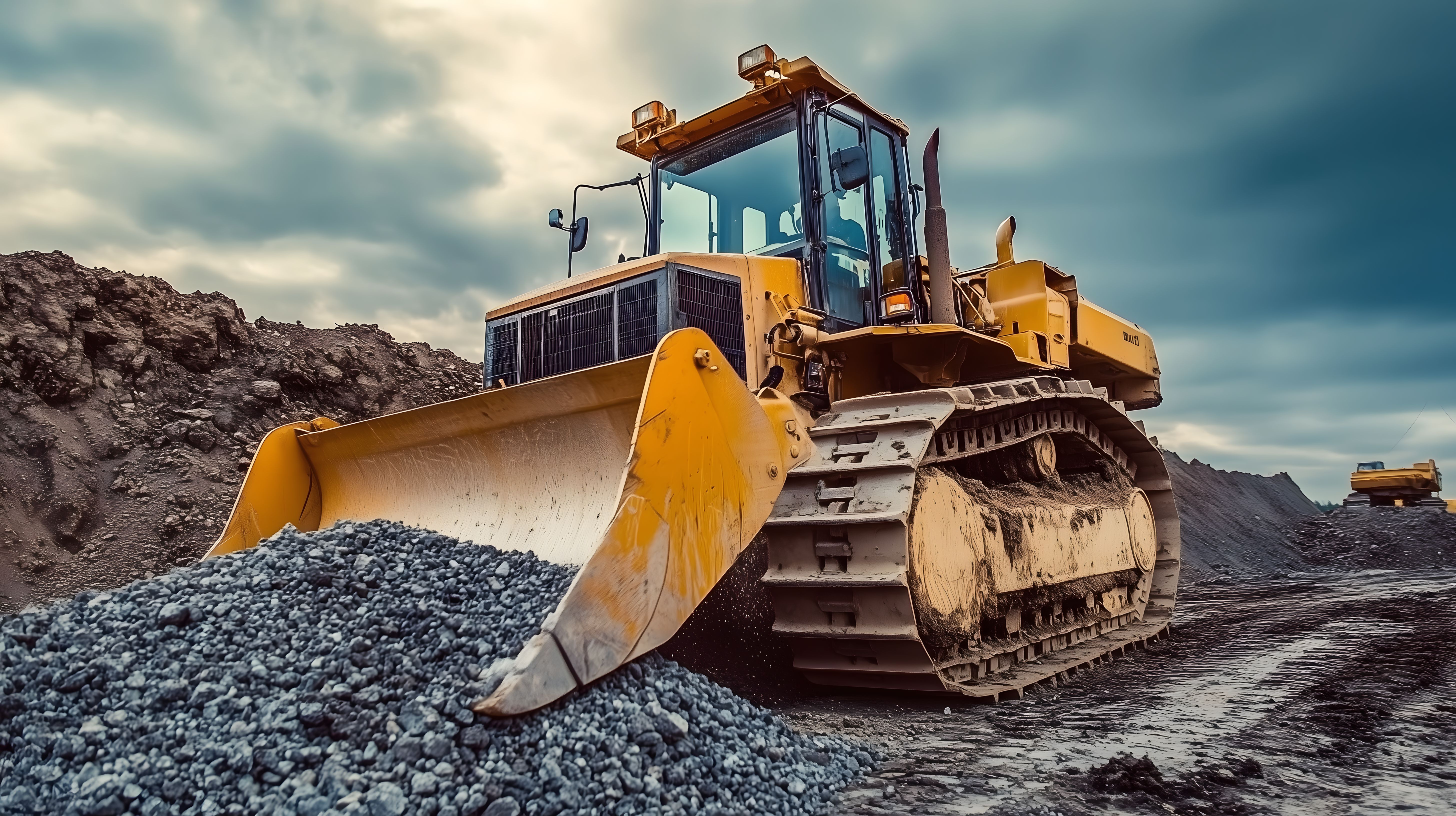 Das Bild zeigt einen großen, gelben Bagger, der Kies auf einer Baustelle verteilt. Der Bagger steht auf einem Hügel aus Steinen und Geröll vor einem bewölkten Himmel. Er besitzt einen imposanten Frontlader, der den Kies aufnimmt und ausbringt. Dieses Foto eignet sich hervorragend für Projekte im Bereich der Bauindustrie, Infrastruktur, Schwerlastverkehr oder Tiefbau. Als kostenloses Stockfoto in hoher Auflösung und unter Creative-Commons-Lizenz kann es beispielsweise in Blogbeiträgen, Werbematerialien oder Social-Media-Posts verwendet werden.