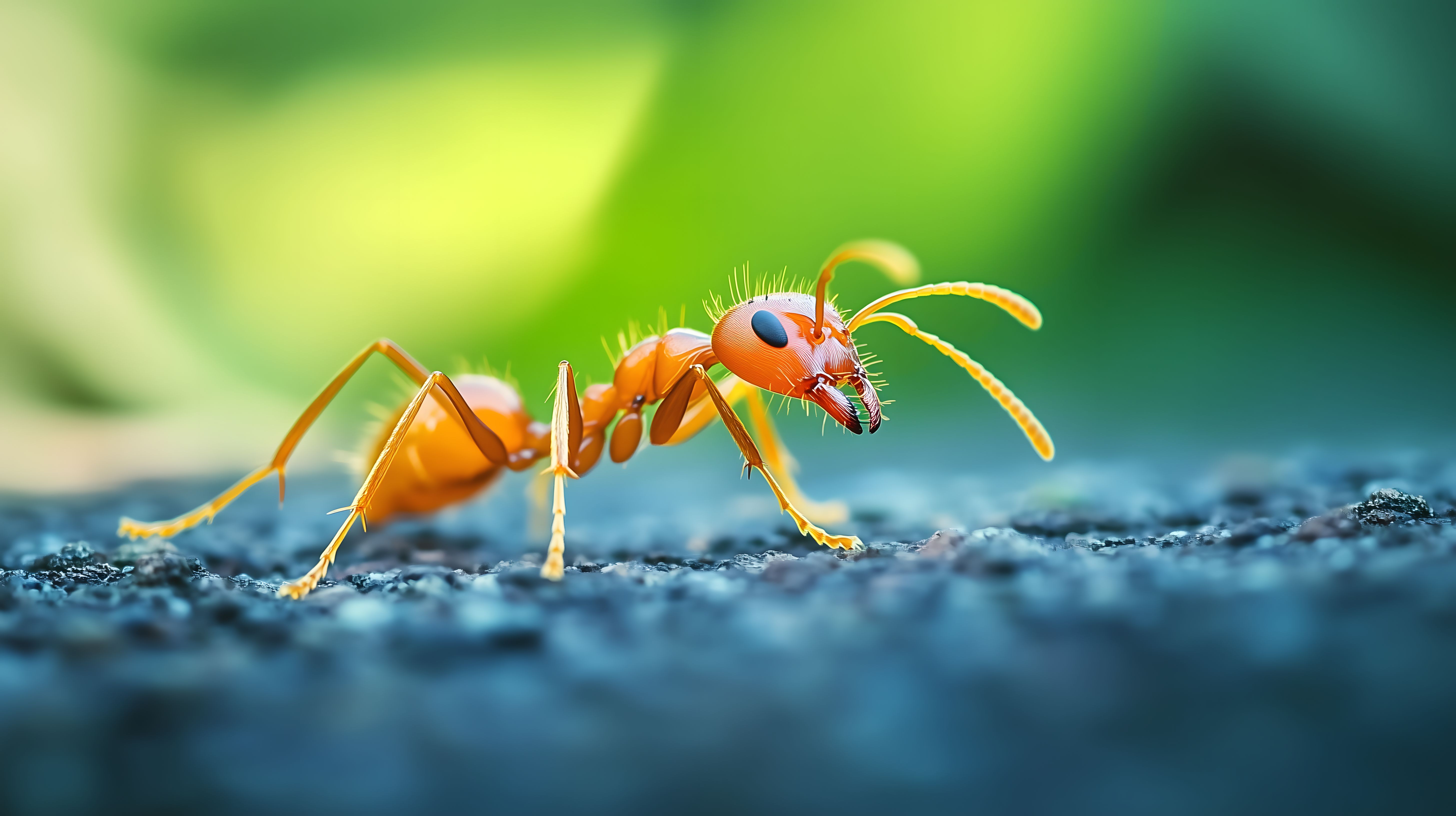Diese beeindruckende Nahaufnahme zeigt eine leuchtend orangene Ameise, die über den Boden läuft. Das Foto besticht durch seine scharfe Detailwiedergabe und den starken Kontrast zwischen dem satten Orange des Insekts und dem dunkelgrauen Untergrund. Die Perspektive aus der Froschperspektive verleiht dem Bild eine faszinierende, fast majestätische Anmutung. Dieses hochauflösende Stockfoto eignet sich hervorragend für die Verwendung in Blogbeiträgen, Newslettern, Social-Media-Beiträgen oder als dekoratives Element in Werbematerialien. Als kostenloses Stockfoto unter der Creative-Commons-Lizenz lässt es sich vielseitig und rechtssicher einsetzen.