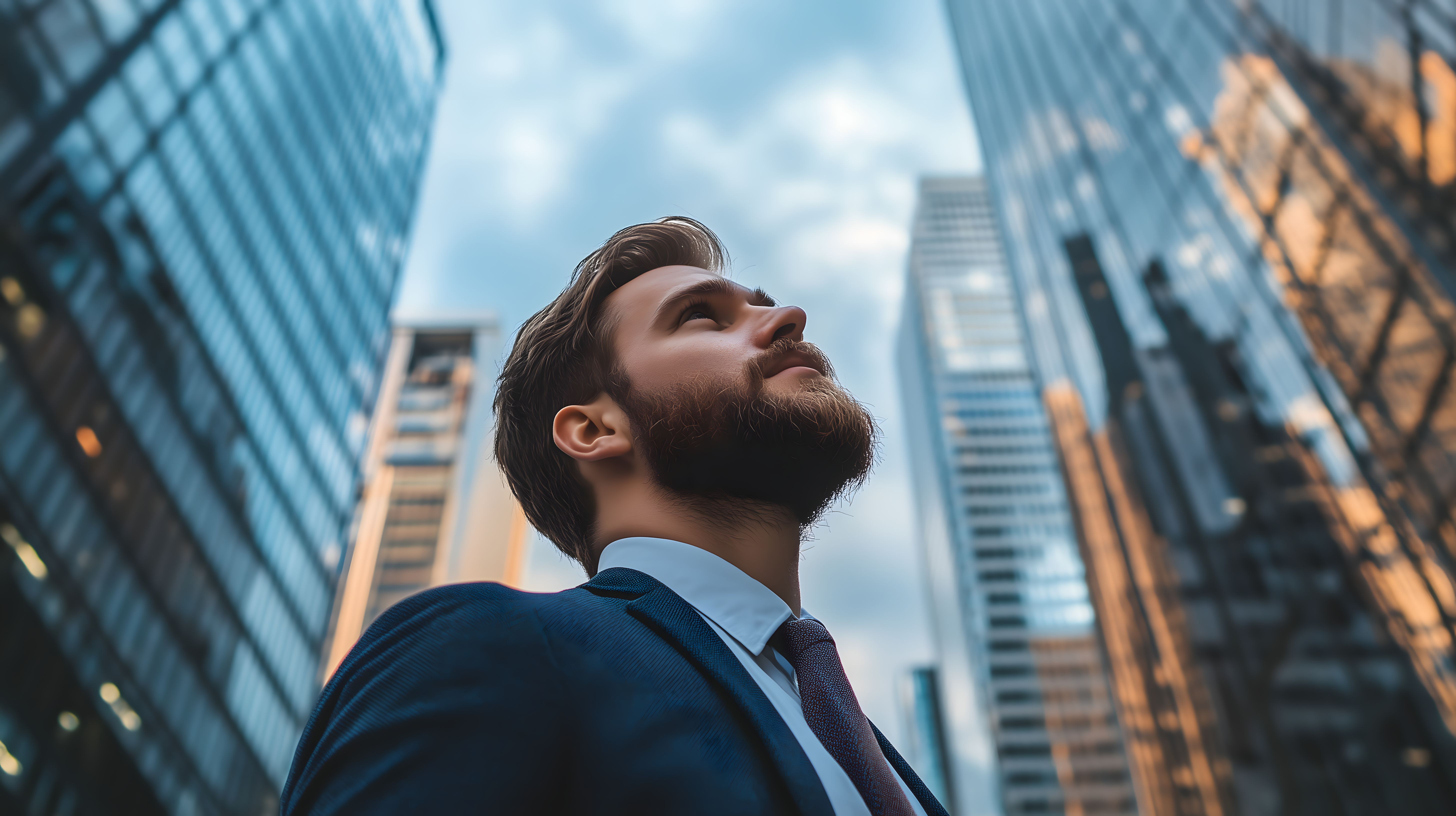 Das Bild zeigt einen nachdenklichen Geschäftsmann in einem Anzug, der zu den modernen Hochhäusern der Stadt emporblickt. Er scheint nach Inspiration und Erfolg zu suchen, angetrieben von der beeindruckenden Architektur und dem Ausblick auf die Skyline. Das Foto vermittelt ein Gefühl von Ehrgeiz, Entschlossenheit und Visionen für die Zukunft. Es eignet sich hervorragend als kostenloses Stockfoto in hoher Auflösung für Unternehmenspräsentationen, Webseiten, Blogbeiträge oder Social-Media-Posts zu Themen wie Führung, Karriere, Unternehmertum und Geschäftskonzepte. Die Aufnahme steht unter einer Creative-Commons-Lizenz zur Verfügung.