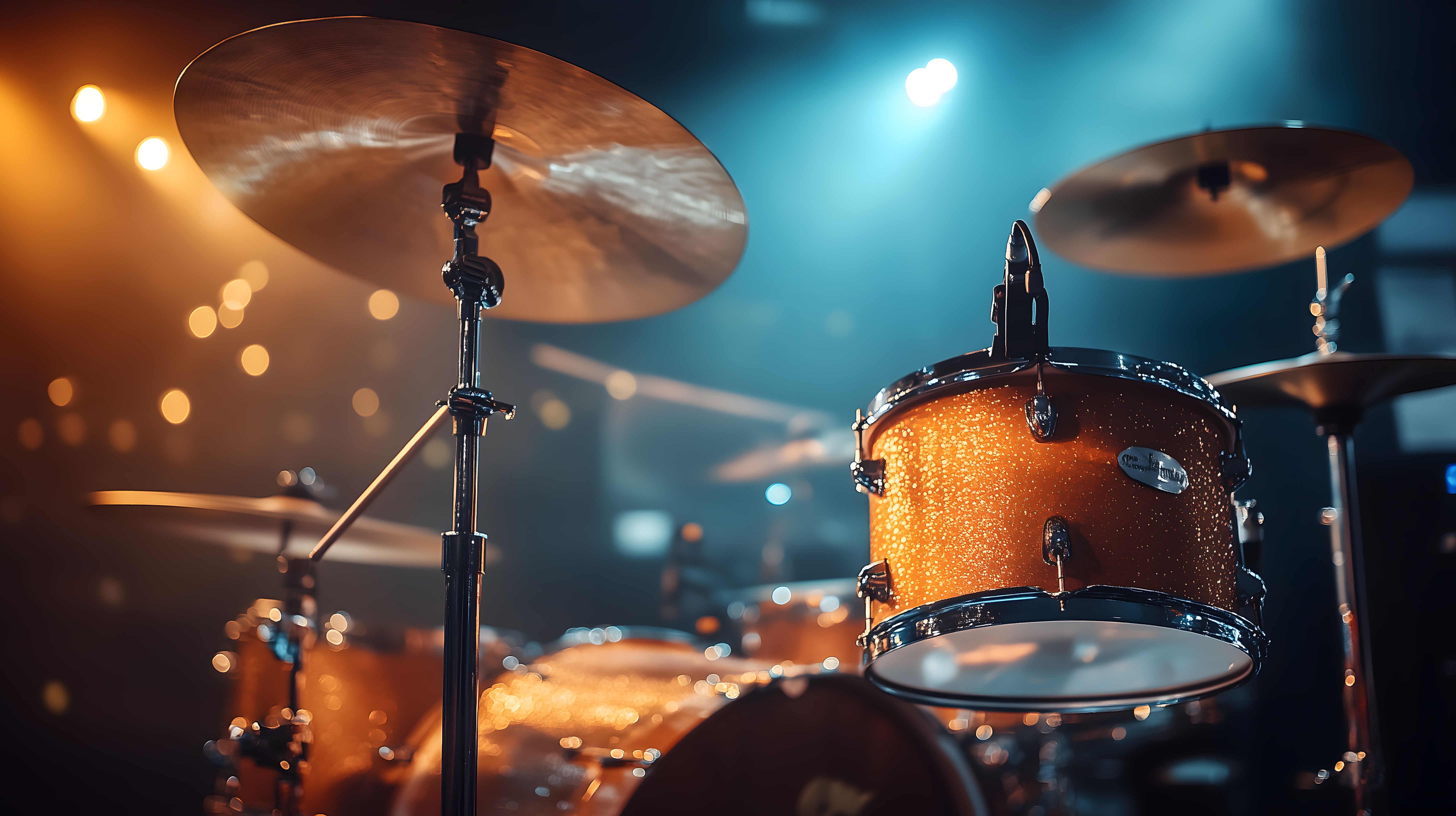 Dieses fesselnde Stockfoto zeigt ein Schlagzeug auf einer Bühne, das von farbigem Rampenlicht angestrahlt wird. Die glänzenden Becken und der orange-glitzernde Schlagzeugkessel stehen im Mittelpunkt des Bildes, umgeben von einer dunklen Umgebung, die den Fokus auf das Instrument lenkt. Die dynamische Komposition und die dramatische Beleuchtung vermitteln eine Atmosphäre von Energie und Leidenschaft, wie sie bei einer Live-Musikaufführung zu erwarten wäre. Dieses hochauflösende Foto eignet sich hervorragend für den Einsatz in Blogbeiträgen, Newslettern, Werbematerialien oder Social-Media-Posts rund um das Thema Musik, Unterhaltung und Kreativität. Es steht unter einer kostenlosen Creative-Commons-Lizenz zur Verfügung.
