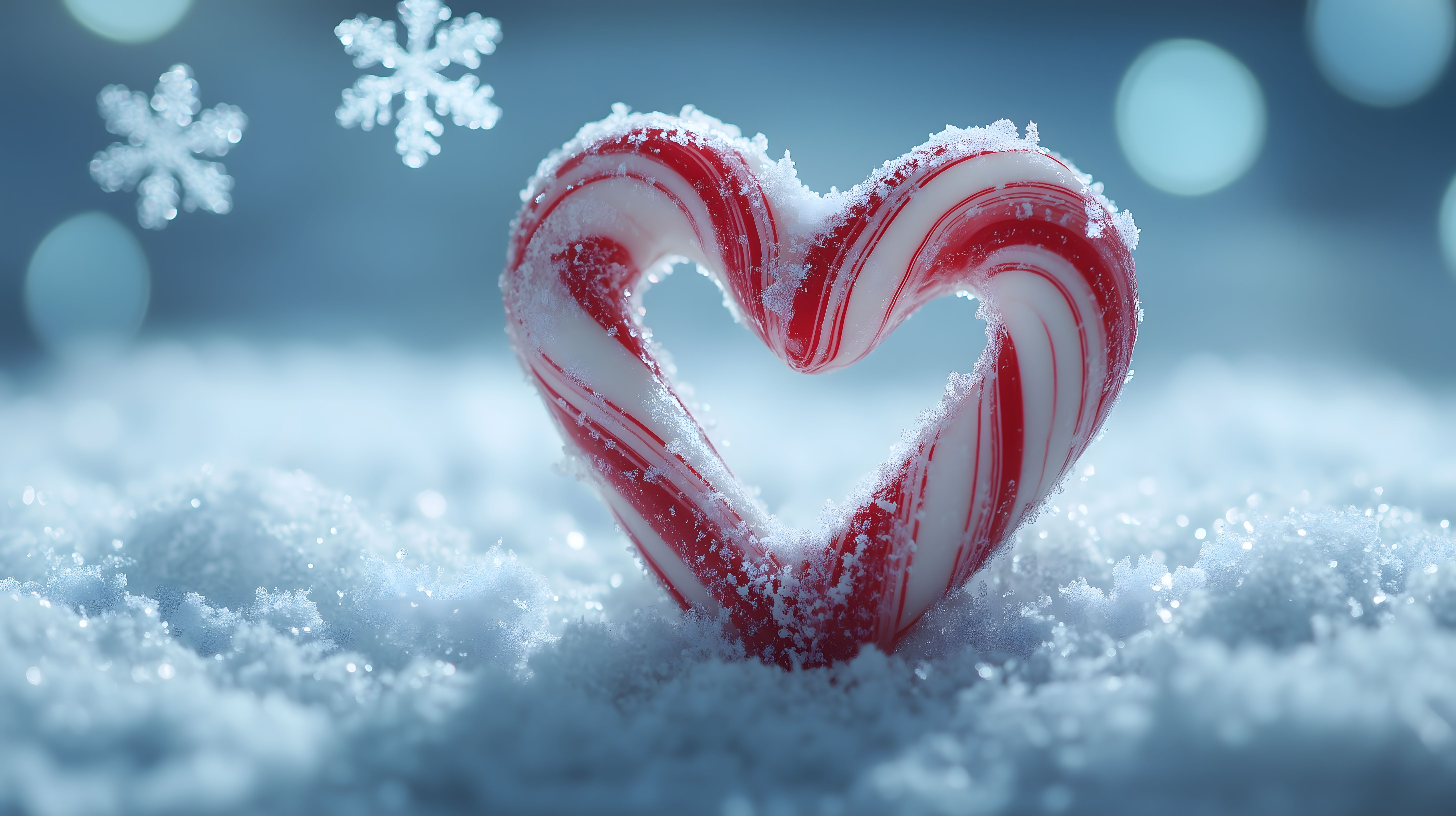 Dieses zauberhafte Winterfoto zeigt eine herzförmige Zuckerstange, die liebevoll mit Schneekristallen überzogen ist. Die Szene spielt sich vor einem verschwommenen, eisigen Hintergrund ab, der durch die weichen Schneeflocken zusätzlich betont wird. Das Motiv strahlt eine romantische und festliche Stimmung aus und eignet sich hervorragend für Weihnachts- oder Winterkampagnen in Medien, Blogs und Social Media. Als hochauflösendes, kostenloses Stockfoto unter Creative-Commons-Lizenz lässt es sich vielfältig in Projekten einsetzen.