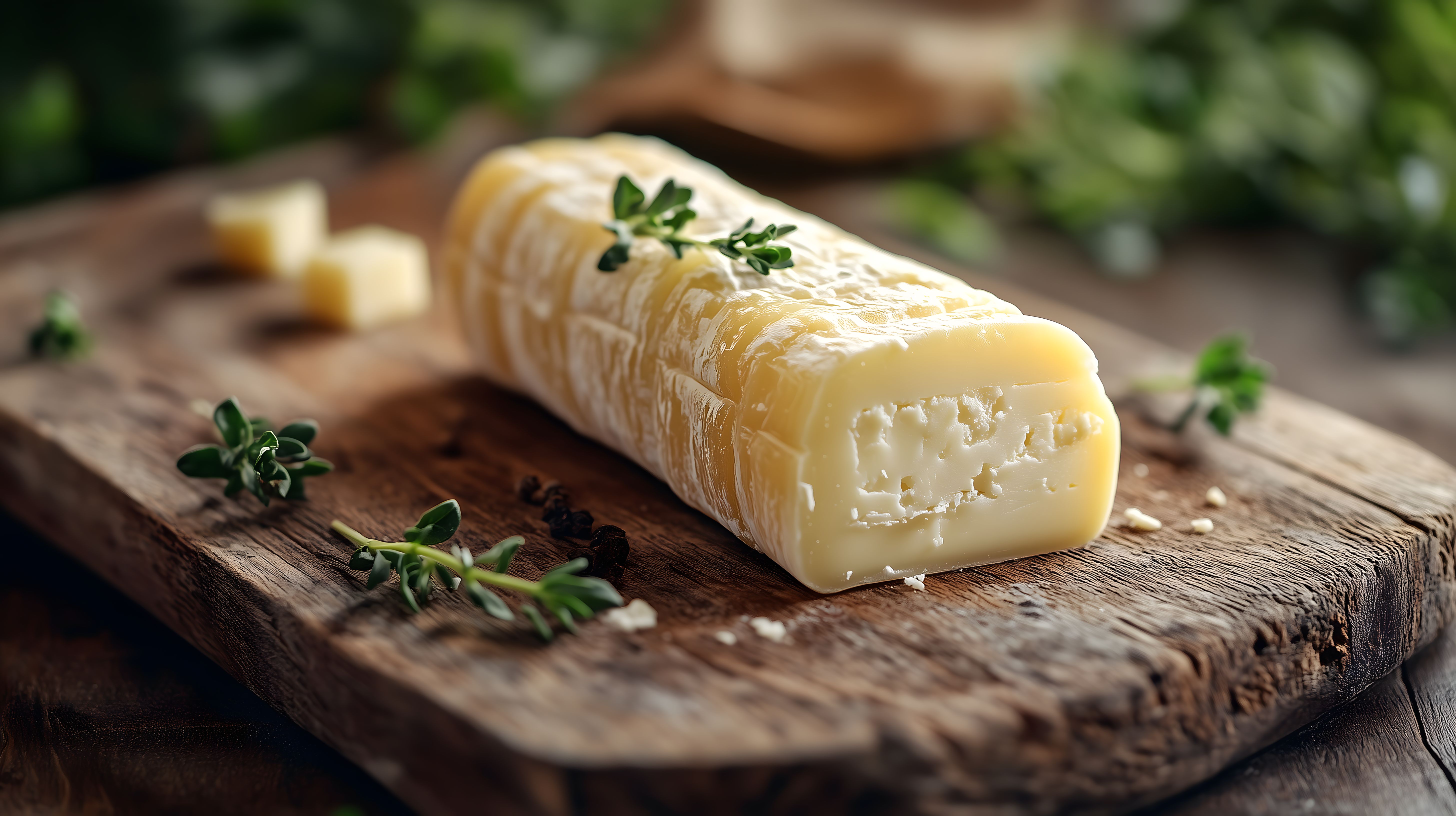 Das Bild zeigt einen frischen, cremigen Käselaib, der auf einem rustikalen Holzbrett angerichtet ist. Der Käse ist in Scheiben geschnitten und mit grünen Kräutern wie Thymian dekoriert. Die Szene strahlt Frische, Natürlichkeit und hochwertige Zutaten aus. Dieses Stockfoto eignet sich hervorragend für Projekte aus den Bereichen Kulinarik, Gastronomie, Rezepte, Ernährung und Lebensmittel. Das Bild ist in hoher Auflösung und unter einer Creative-Commons-Lizenz verfügbar, sodass es kostenfrei für eine Vielzahl von Anwendungen genutzt werden kann - sei es in Blogbeiträgen, auf Websites, in Newslettern oder Social-Media-Kanälen.