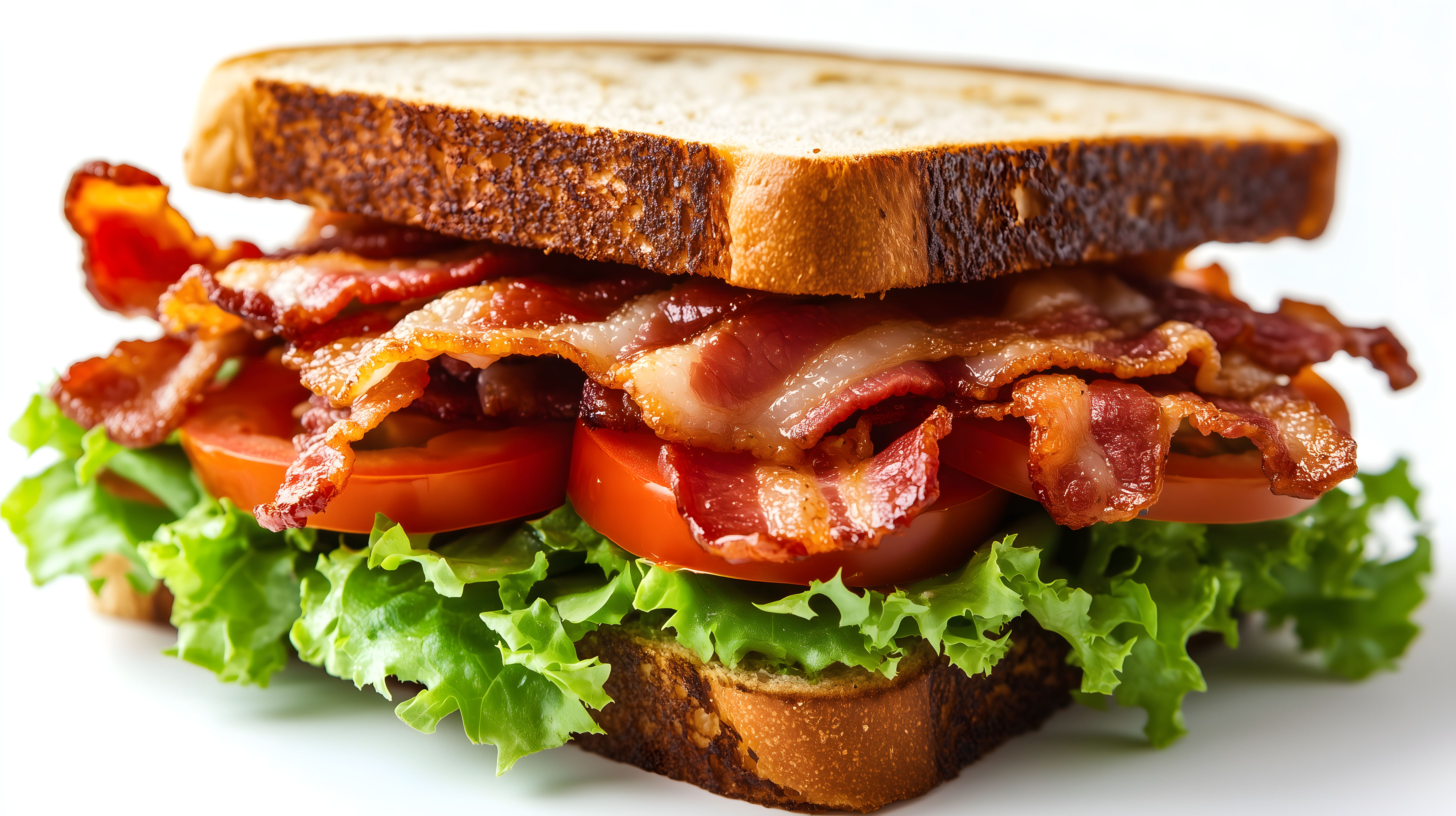 Dieses appetitliche Foto zeigt ein klassisches BLT-Sandwich, bestehend aus knusprigem Speck, frischen Tomaten und Salat, eingebettet zwischen zwei Scheiben goldbraun getoasteten Brotes. Die Nahaufnahme lässt die einzelnen Zutaten deutlich hervortreten und verleiht dem Gericht einen besonders verlockenden Eindruck. Das Bild eignet sich hervorragend als Stockfoto für Blogs, Newsletter, Social-Media-Posts oder Werbeanzeigen rund um Lebensmittel, Gastronomie und Genuss. Die hohe Auflösung und Creative-Commons-Lizenz machen dieses Foto zu einer vielseitig einsetzbaren Ressource für Kreative und Marketer.