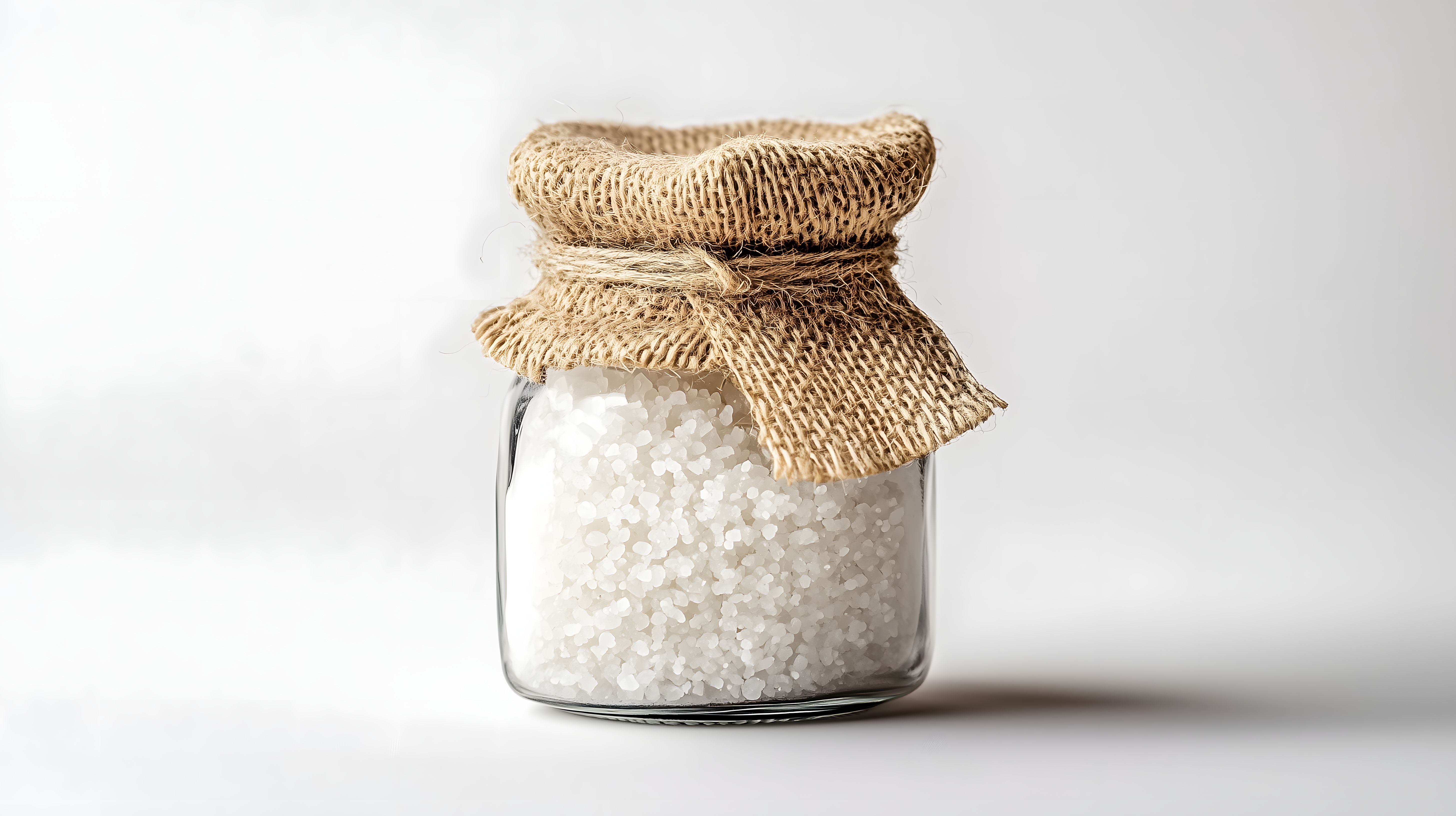 Dieses Foto zeigt ein Glasgefäß, gefüllt mit feinkörnigem Meersalz auf einem hellen, weißen Hintergrund. Das rustikale Gewürzgefäß steht im Mittelpunkt der Aufnahme und ist von einem leicht verschwommenen Hintergrund umgeben, was den Fokus auf das Salz lenkt. Die natürlichen Texturen des Materials und die schlichte Gestaltung verleihen dem Bild einen minimalistischen und stilvollen Charakter. Dieses hochauflösende Stockfoto eignet sich hervorragend für die Verwendung in Blogbeiträgen, Newslettern, Social-Media-Posts oder Werbematerialien rund um Themen wie Kochen, Ernährung, Wellness oder Kosmetik. Es steht unter einer Creative-Commons-Lizenz und kann somit kostenfrei genutzt werden.