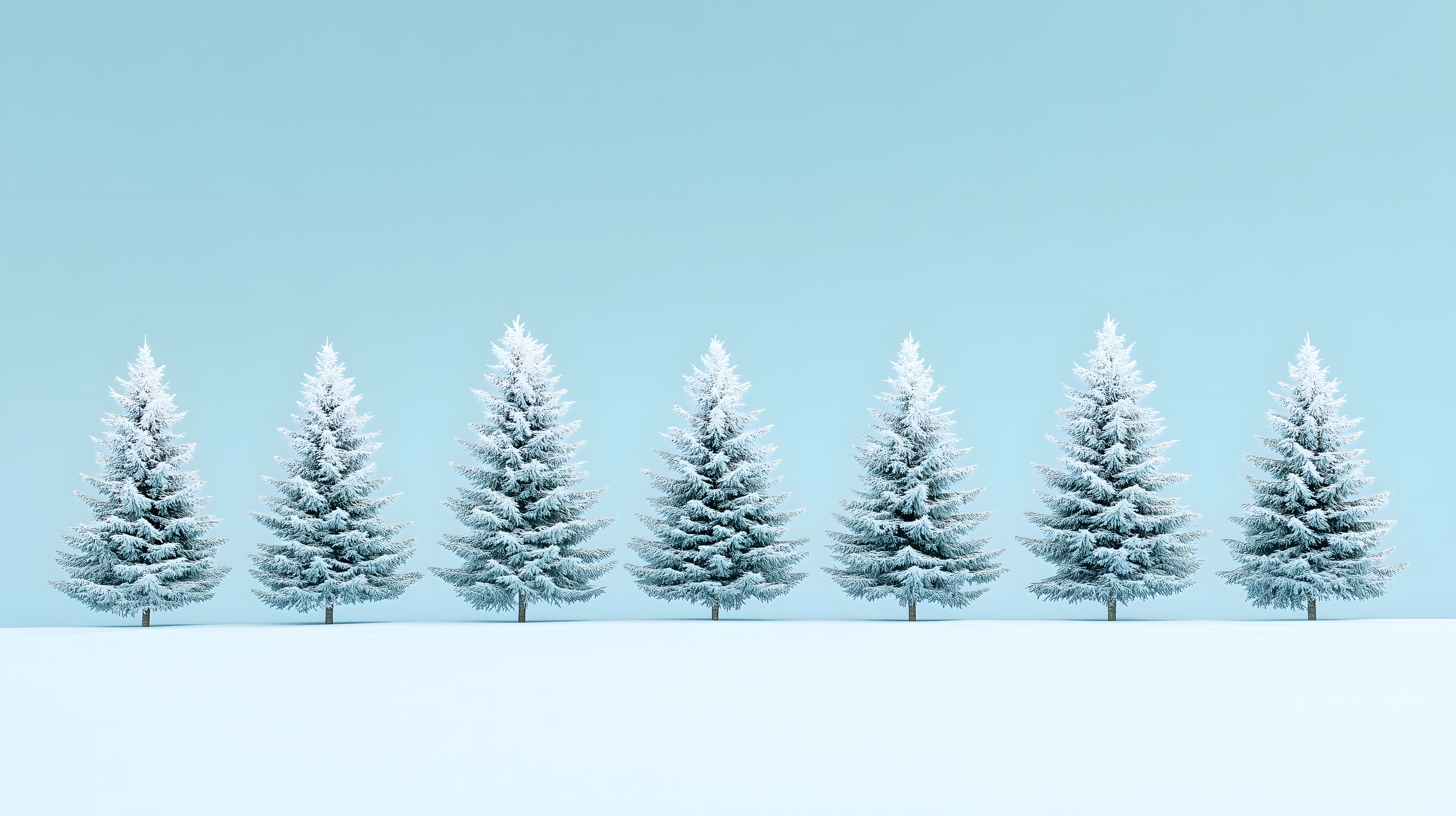 Dieses Foto zeigt eine ruhige Winterlandschaft mit einer Reihe von schneebedeckten Kiefern vor einem klaren, blauen Himmel. Die Bäume sind mit einer dicken Schneeschicht überzogen, was eine märchenhafte, friedliche Stimmung verleiht. Das Bild eignet sich hervorragend als Hintergrundbild für Weihnachts- und Winterthemen in Blogs, Newslettern, sozialen Medien oder Werbung. Es ist ein hochauflösendes, kostenloses Stockfoto unter der Creative-Commons-Lizenz.