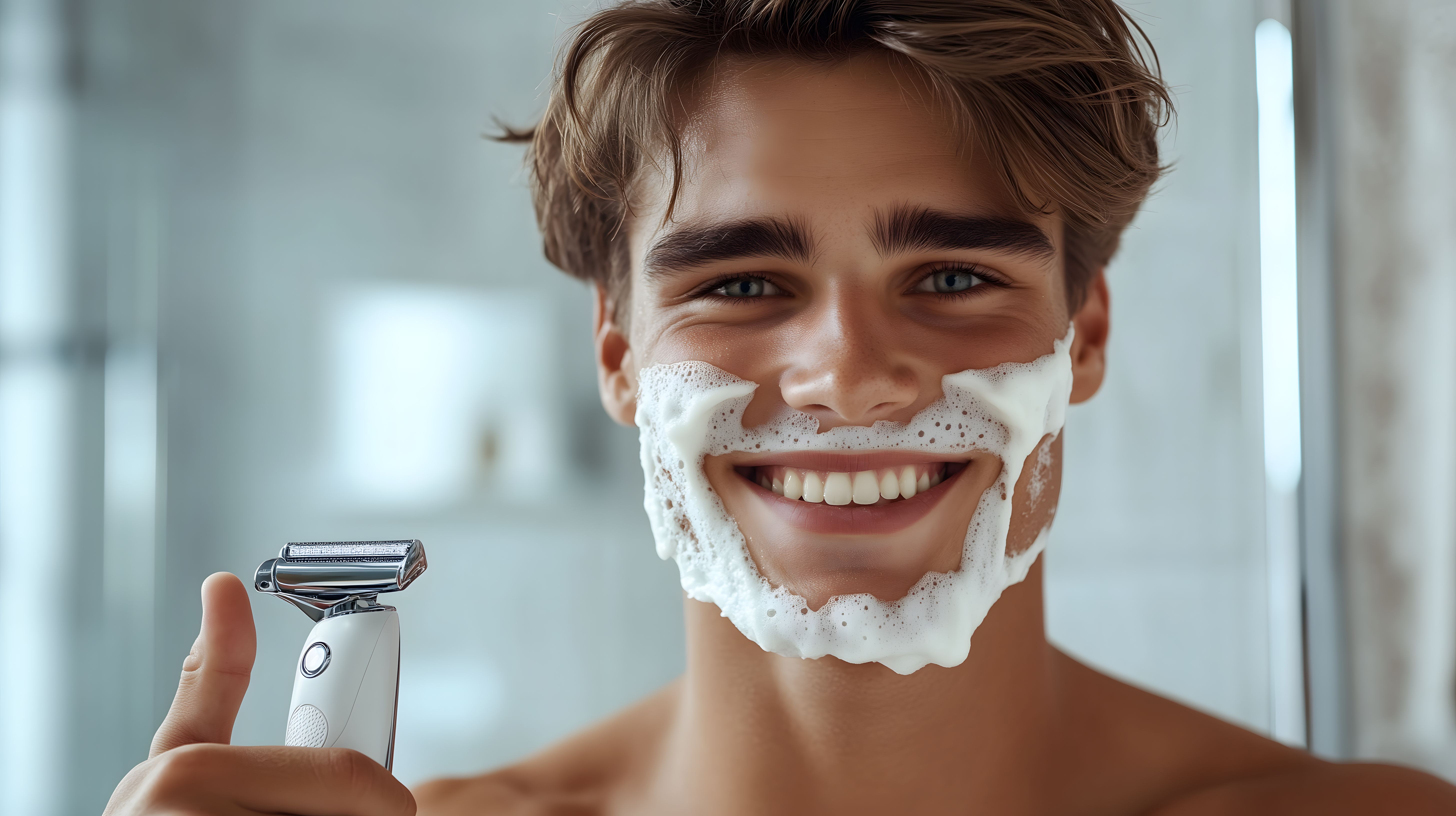 Das Foto zeigt einen jungen Mann, der sich mit einem Elektrorasierer rasiert und dabei fröhlich in die Kamera lächelt. Er hat ein freundliches Gesichtsausdrück und eine frische, saubere Haut. Der Rasierer ist im Fokus, sodass der Betrachter den Rasiervorgang gut erkennen kann. Der weiße Hintergrund lässt den Fokus ganz auf den Mann und seine Handlung gelenkt. Dieses Foto eignet sich ideal für Werbung, Websites oder Social-Media-Beiträge rund um Themen wie Gesichtspflege, Rasieren oder Wellness. Als kostenloses Stockfoto in hoher Auflösung kann es unter der Creative-Commons-Lizenz frei genutzt werden.