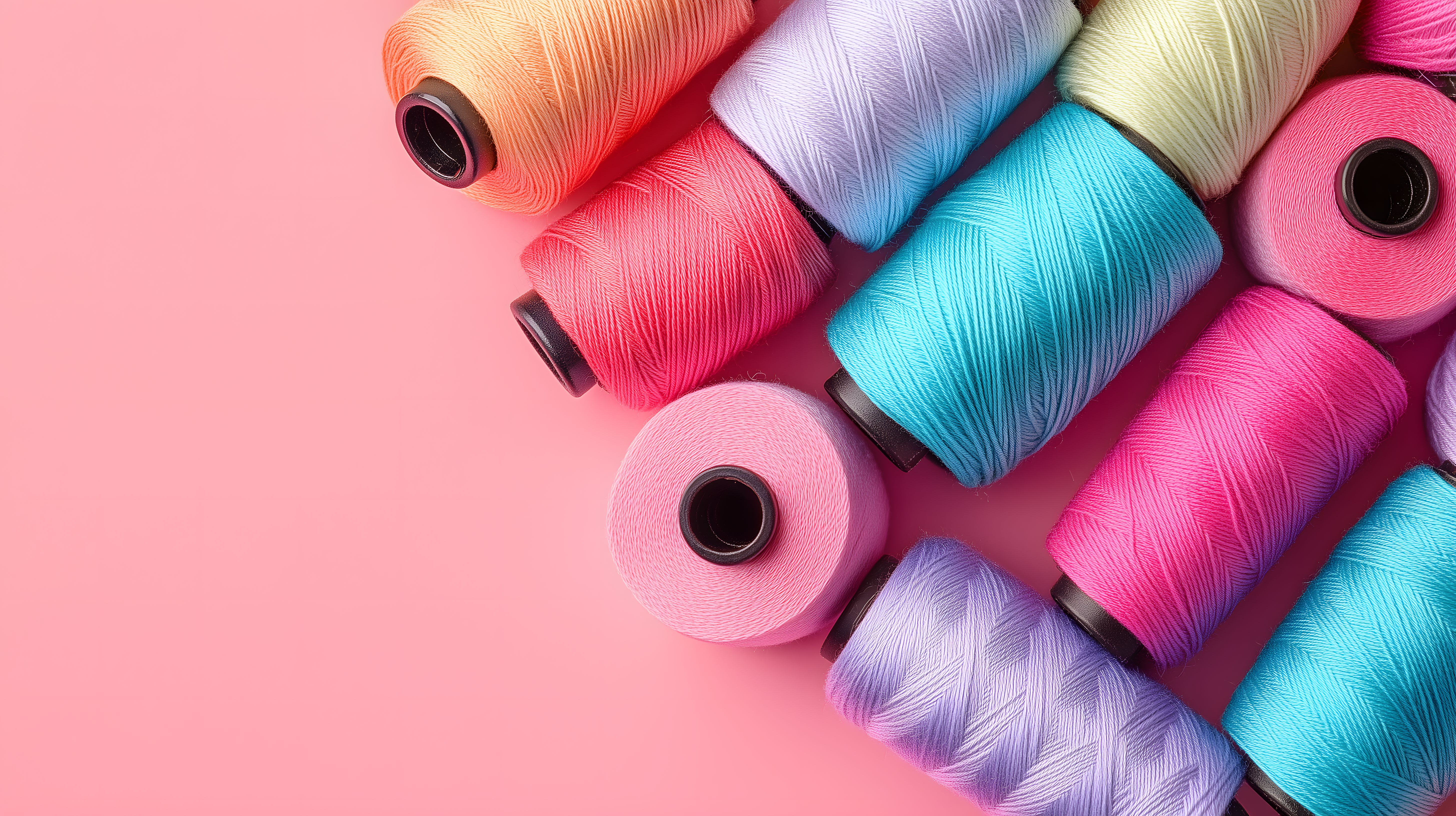 Bunte Garnspulen in Pastelltönen auf rosa Hintergrund von Marco Verch unter Creative Commons 2.0