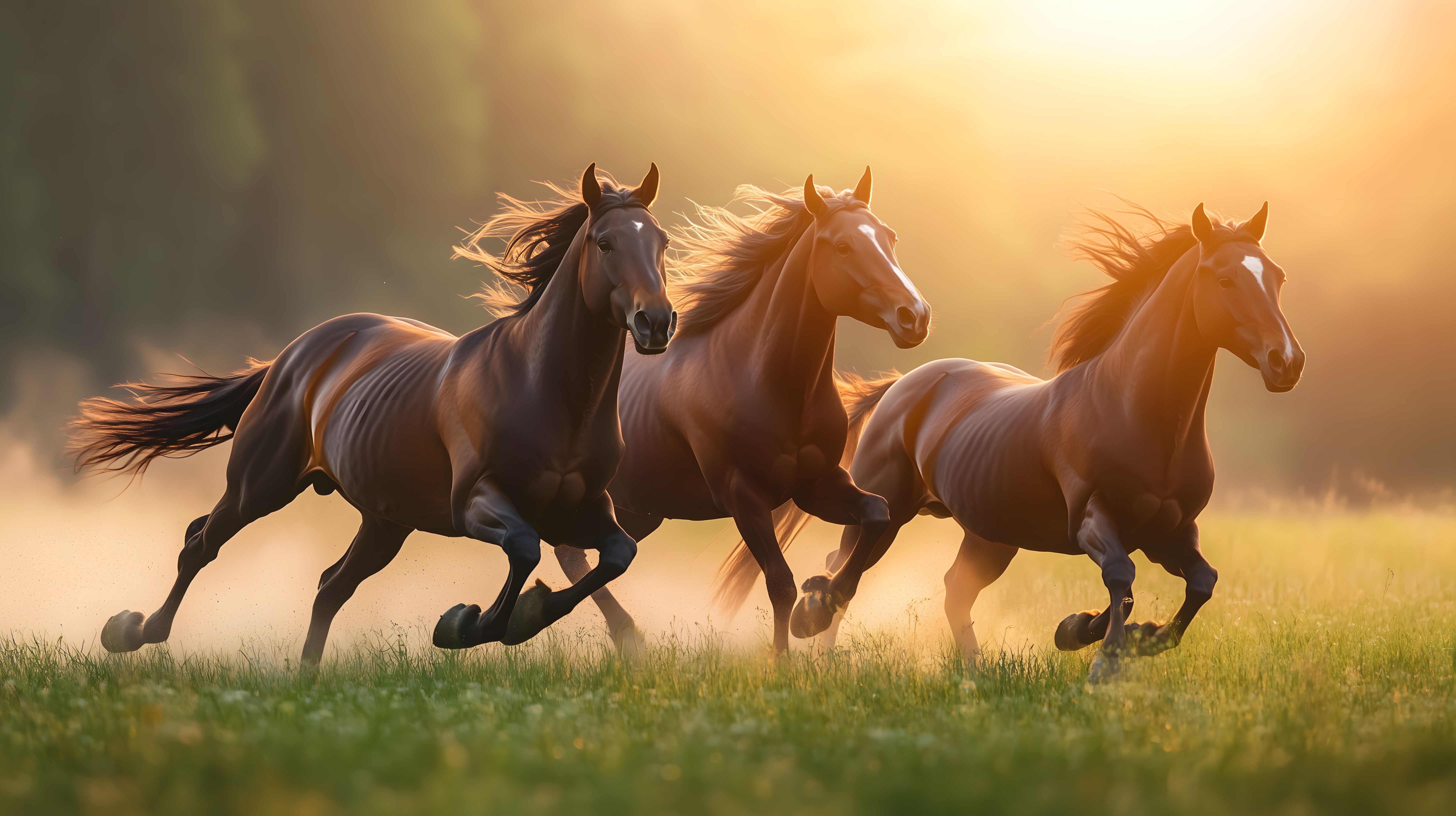 Dieses farbenfrohe Foto zeigt eine Gruppe von drei Pferden, die voller Energie über eine sonnige, blühende Sommerwiese galoppieren. Die warmen Farbtöne und der weiche Lichteinfall verleihen dem Bild eine beeindruckende, fast schon romantische Atmosphäre. Die kraftvollen Bewegungen der Tiere sowie der staubige Hintergrund vermitteln ein Gefühl von Wildheit und Freiheit. Dieses hochauflösende Stockfoto ist unter einer Creative-Commons-Lizenz frei verwendbar und eignet sich hervorragend für den Einsatz in Blogbeiträgen, Newslettern, Social-Media-Posts oder Werbematerialien, die eine natürliche und emotionale Bildsprache erfordern.