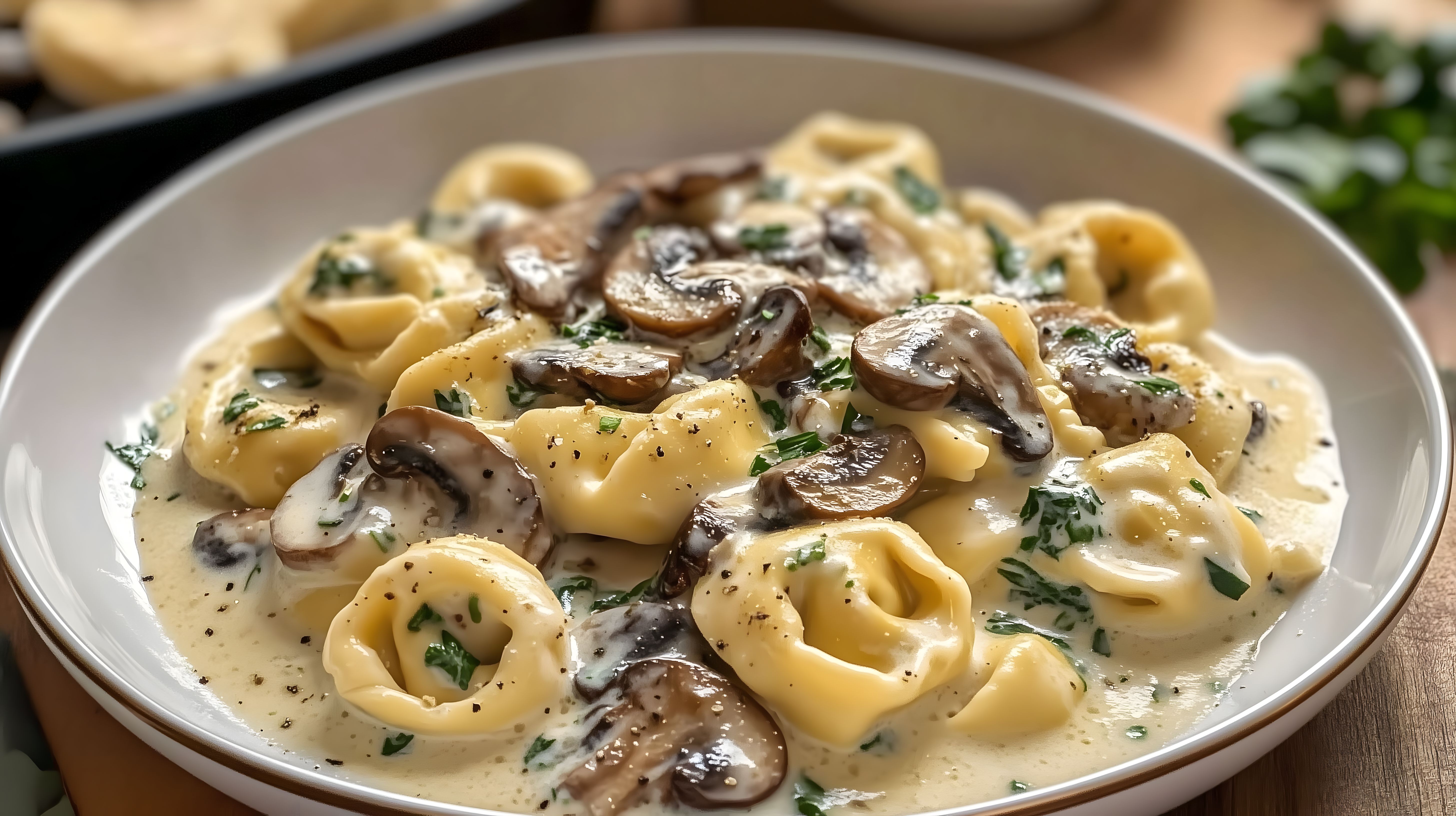 Dieses appetitliche Foto zeigt eine Schüssel voller leckerer Tortellini, die in einer cremigen Pilzsauce serviert werden. Die Nudeln sind goldgelb und die Pilzstückchen haben eine schöne, braune Farbe. Das Gericht ist mit frisch gehackter Petersilie garniert, was ihm einen frischen, aromatischen Akzent verleiht. Diese hochauflösende Foodfotografie eignet sich perfekt als kostenloses Stockfoto für Blogs, Social-Media-Kanäle oder Werbeanzeigen, die italienische Küche, Pasta oder Pilzgerichte präsentieren möchten. Das Bild ist unter einer Creative-Commons-Lizenz verfügbar.