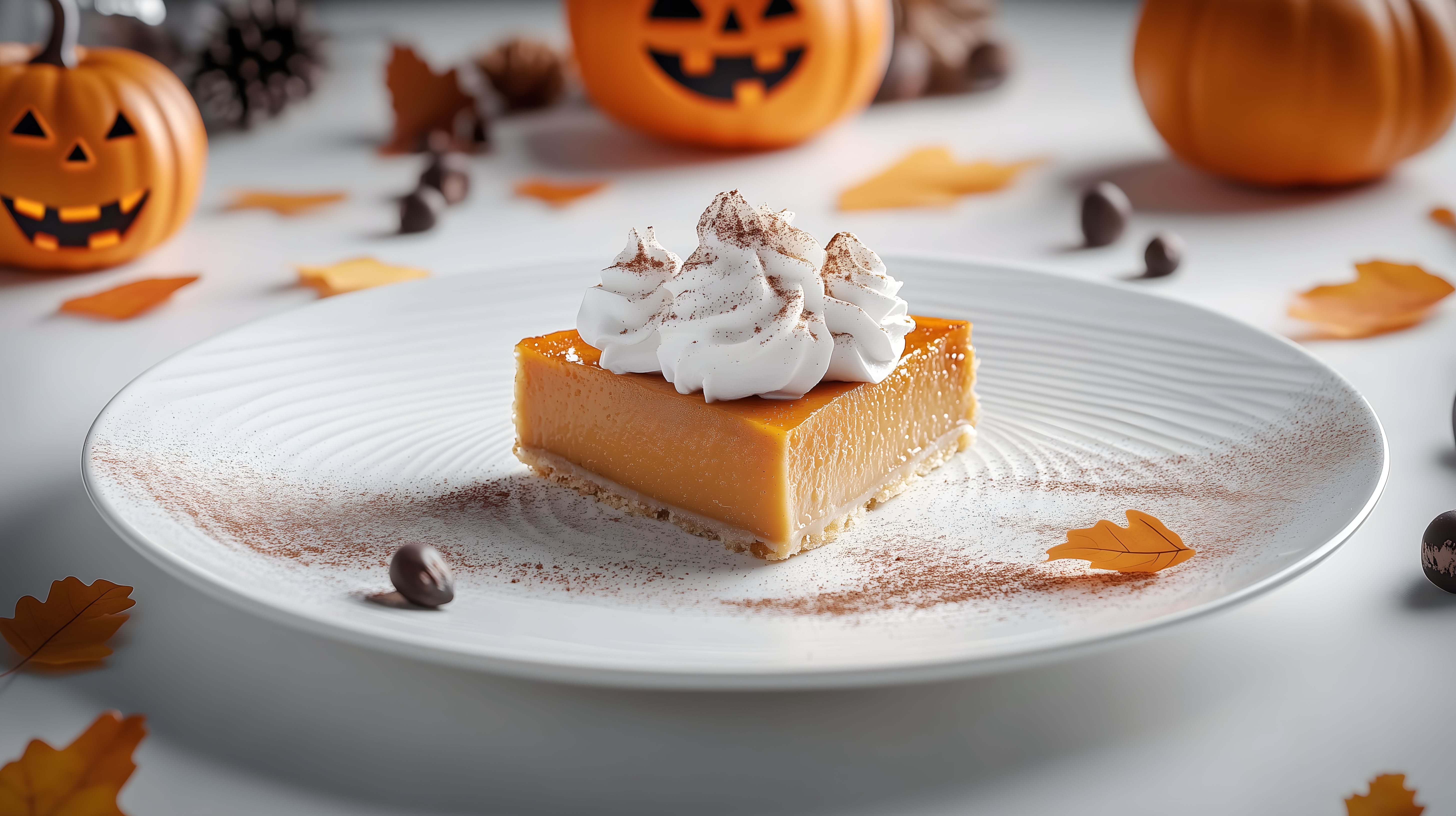 Das Bild zeigt eine Scheibe Kürbiskuchen, dekoriert mit Sahne und Zimt. Der Kuchen ist auf einem hellen Teller angerichtet, umgeben von Herbstdekorationen wie Kürbissen, Zapfen und Blättern. Die Farbkomposition aus Orange, Weiß und Braun verleiht dem Bild eine stimmungsvolle, herbstliche Atmosphäre. Dieses hochauflösende Stockfoto eignet sich ideal für Beiträge zu Halloween, Herbstrezepte oder Dekorationsideen in Blogs, Newslettern oder Social-Media-Kanälen. Es steht unter einer kostenlosen Creative-Commons-Lizenz zur Verwendung zur Verfügung.