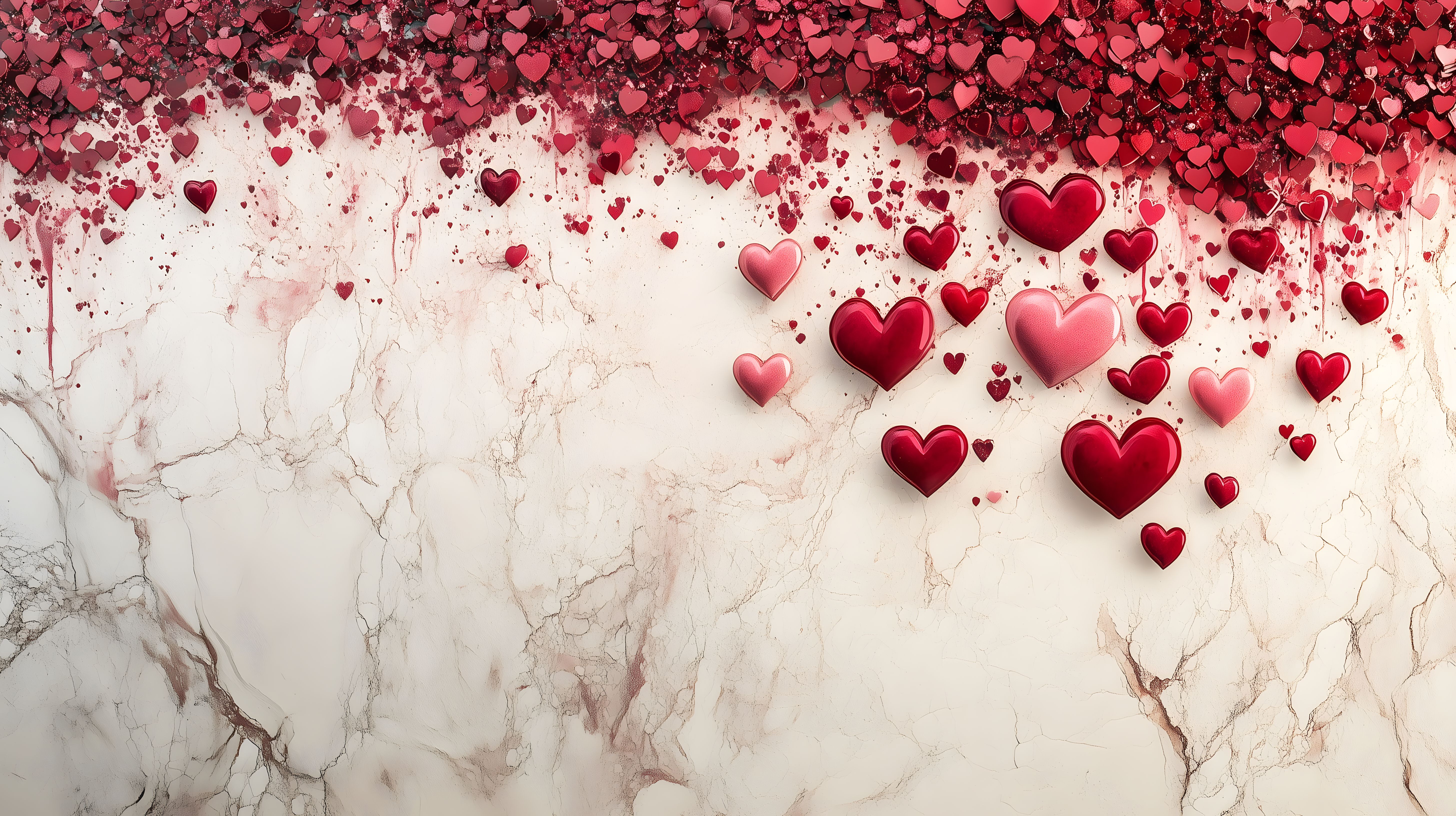 Dieses bezaubernde Bild zeigt eine Fülle von roten und rosafarbenen Herzen, die wie ein romantischer Regen auf einer eleganten, marmorierten Oberfläche fallen. Die Komposition ist stimmungsvoll und detailreich, mit einer Vielzahl unterschiedlich großer Herzen, die ein Gefühl der Liebe und Zuneigung vermitteln. Diese Grafik eignet sich hervorragend für Valentinstag-Themen, Hochzeitsdekorationen, Liebesgeschichten oder andere romantische Anwendungen in Blogs, Newslettern, Social-Media-Beiträgen oder Werbematerialien. Das hochauflösende, kostenlose Stockfoto unter Creative-Commons-Lizenz ist in verschiedenen Formaten und Größen erhältlich.