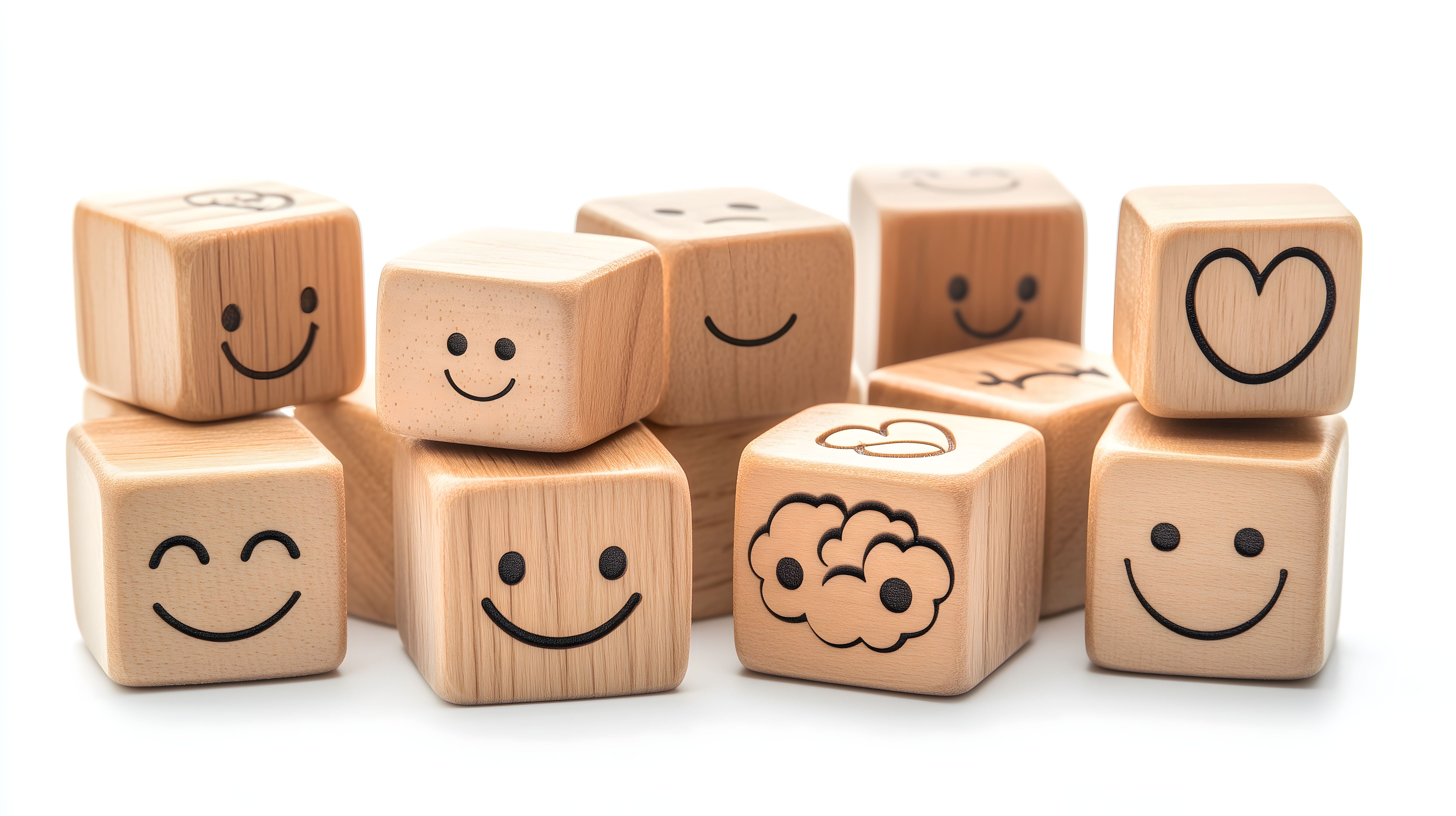 Dieses Foto zeigt eine Ansammlung von hölzernen Würfeln mit verschiedenen Symbolen und Gesichtern darauf. Die Würfel stehen in einer gruppierenden Anordnung und vermitteln ein Gefühl von Freude, Kreativität und Denkprozessen. Das Gehirnsymbol auf einem der Würfel unterstreicht die Assoziation mit geistiger Aktivität. Das Bild eignet sich hervorragend für den Einsatz in Blogs, Werbekampagnen oder Social-Media-Beiträgen, die sich mit Themen wie Kreativität, Emotion und Kommunikation auseinandersetzen. Dieses kostenlose Stockfoto in hoher Auflösung ist unter der Creative-Commons-Lizenz verfügbar.