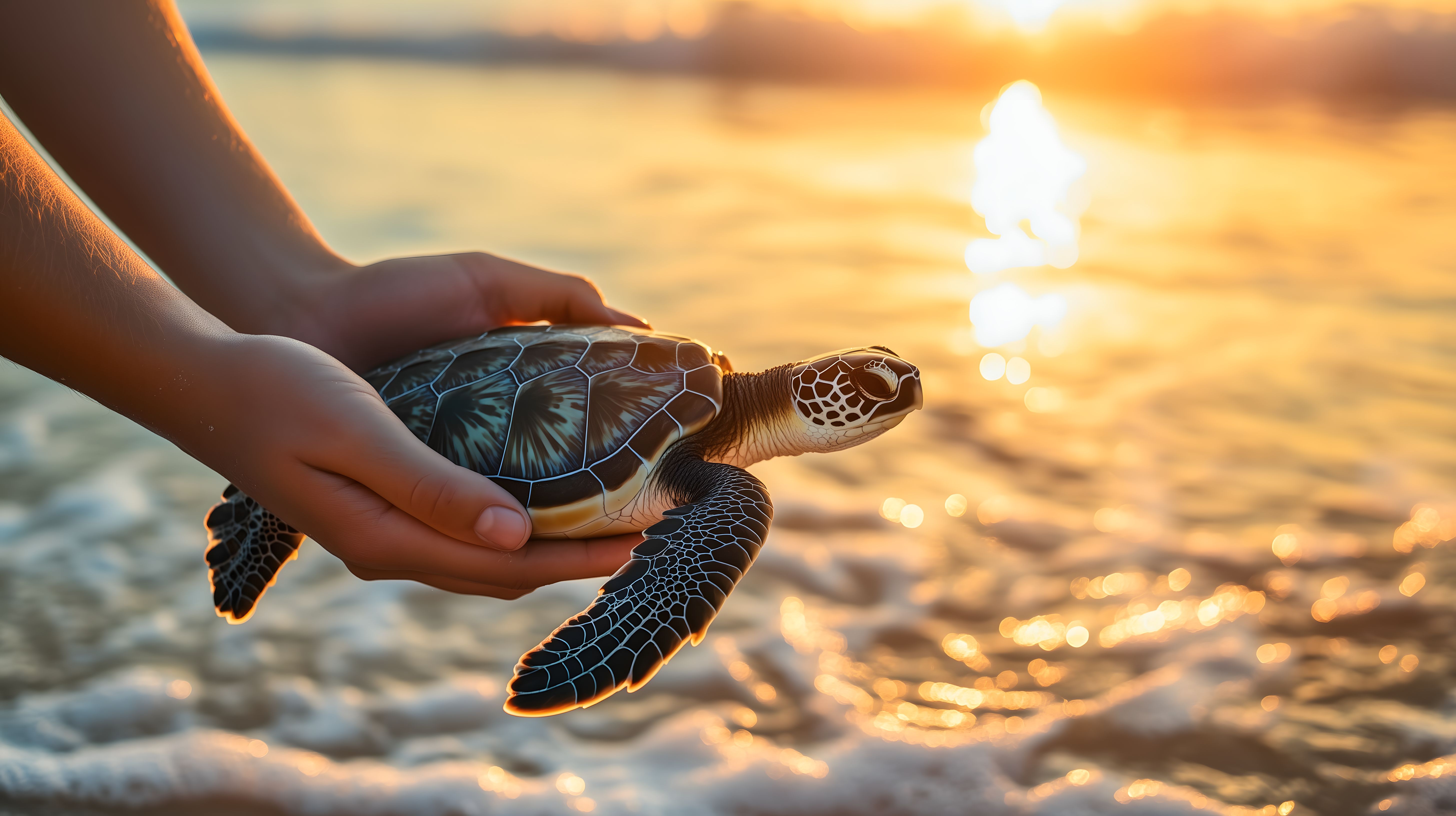 Dieses atemberaubende Foto zeigt eine seltene Meeresschildkröte, die sanft von einer Person in den Händen gehalten wird, während im Hintergrund ein malerischer orangeroter Sonnenuntergang über dem Meer erstrahlt. Die Schildkröte mit ihrem einzigartigen Panzer scheint in der Ruhe dieses Moments zu verweilen, umgeben von der warmen Atmosphäre des Abends. Das Bild strahlt eine friedliche, natürliche Stimmung aus und eignet sich hervorragend als kostenloses Stockfoto für Blogs, Newsletter oder Soziale Medien rund um Themen wie Naturschutz, Ökologie oder Urlaubsstimmung. Die hohe Auflösung und Creative-Commons-Lizenz machen es zu einem vielseitig einsetzbaren Foto.