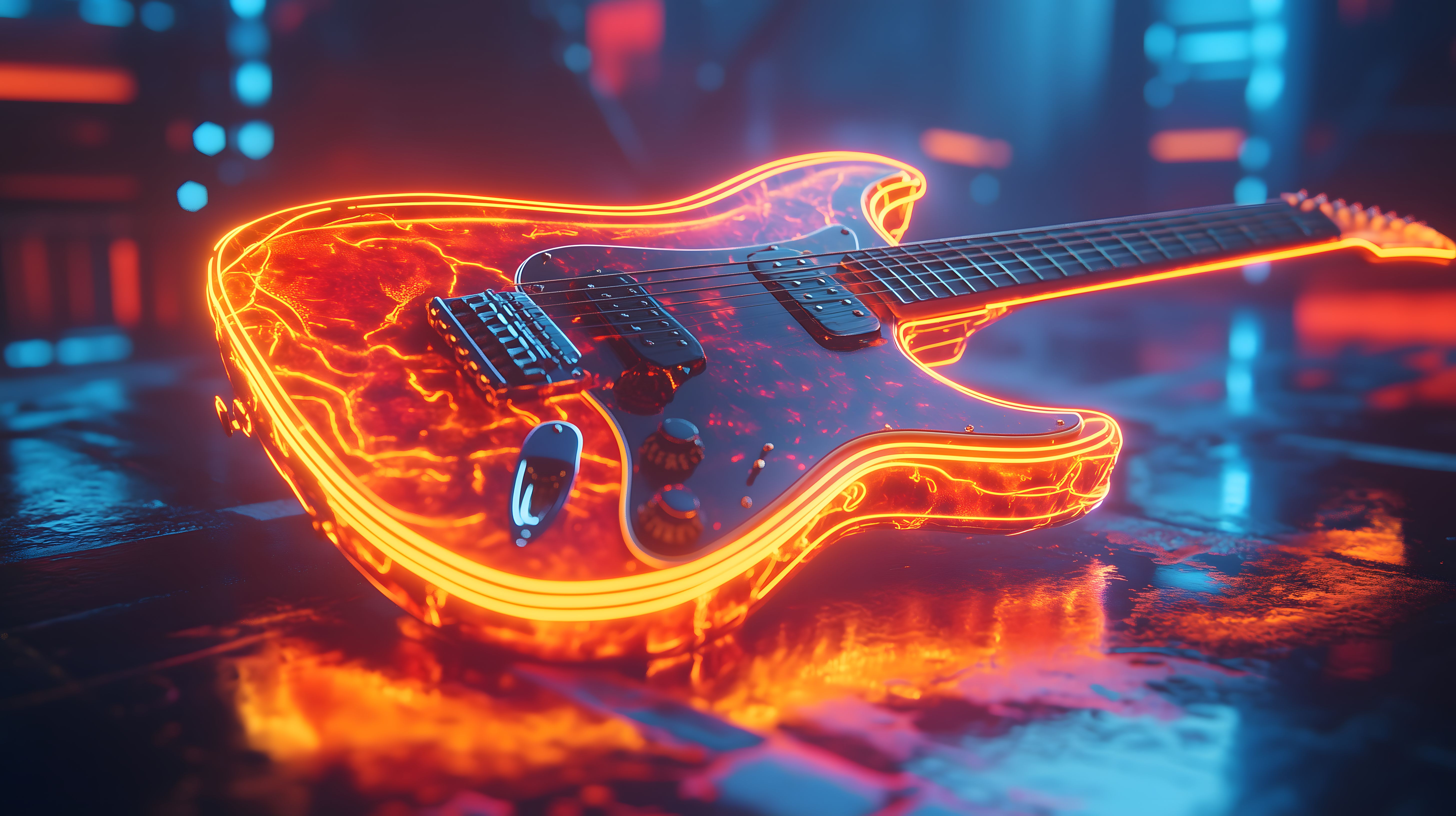Dieses Foto zeigt eine leuchtende, elektrische Gitarre auf einer Bühne. Das Instrument scheint zu glühen und ist von kräftigen, orangefarbenen und blauen Lichtern umgeben. Die Perspektive des Fotos ist leicht erhöht, sodass die Gitarre im Mittelpunkt steht. Dieses Bild würde sich hervorragend als Hintergrund oder Akzent für Blog-Beiträge, Newsletter-Designs, Social-Media-Posts oder Werbematerialien zum Thema Musik, Kreativität und Leidenschaft eignen. Das hochauflösende, kostenlose Stockfoto steht unter einer Creative-Commons-Lizenz zur Verfügung.
