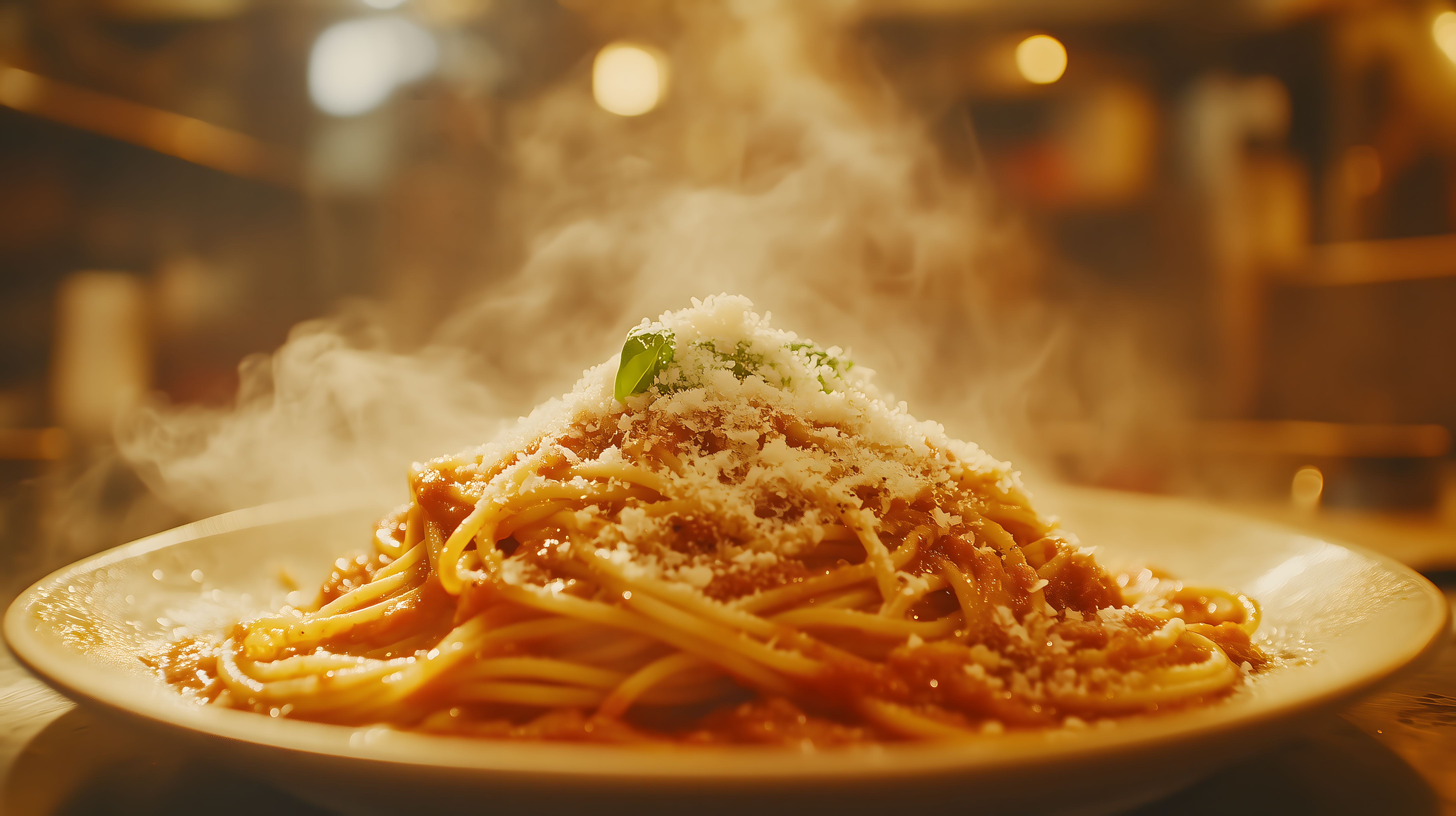 Dieses Foto zeigt eine dampfende, frisch zubereitete Portion Spaghetti Bolognese. Die Pasta liegt angerichtet auf einem Teller und ist mit einer reichhaltigen, roten Tomatensauce bedeckt. Darüber befindet sich eine Schicht frisch geriebener Parmesan-Käse, der einen köstlichen, italienischen Geschmack verleiht. Die Szene strahlt eine rustikale, gemütliche Atmosphäre aus und weckt Appetit auf ein leckeres, traditionelles Nudelgericht. Dieses hochauflösende Stockfoto unter Creative-Commons-Lizenz eignet sich hervorragend für Blogs, Newsletter, Social-Media-Beiträge oder Werbematerialien rund um italienische Küche, Pasta-Rezepte oder Foodfotografie.
