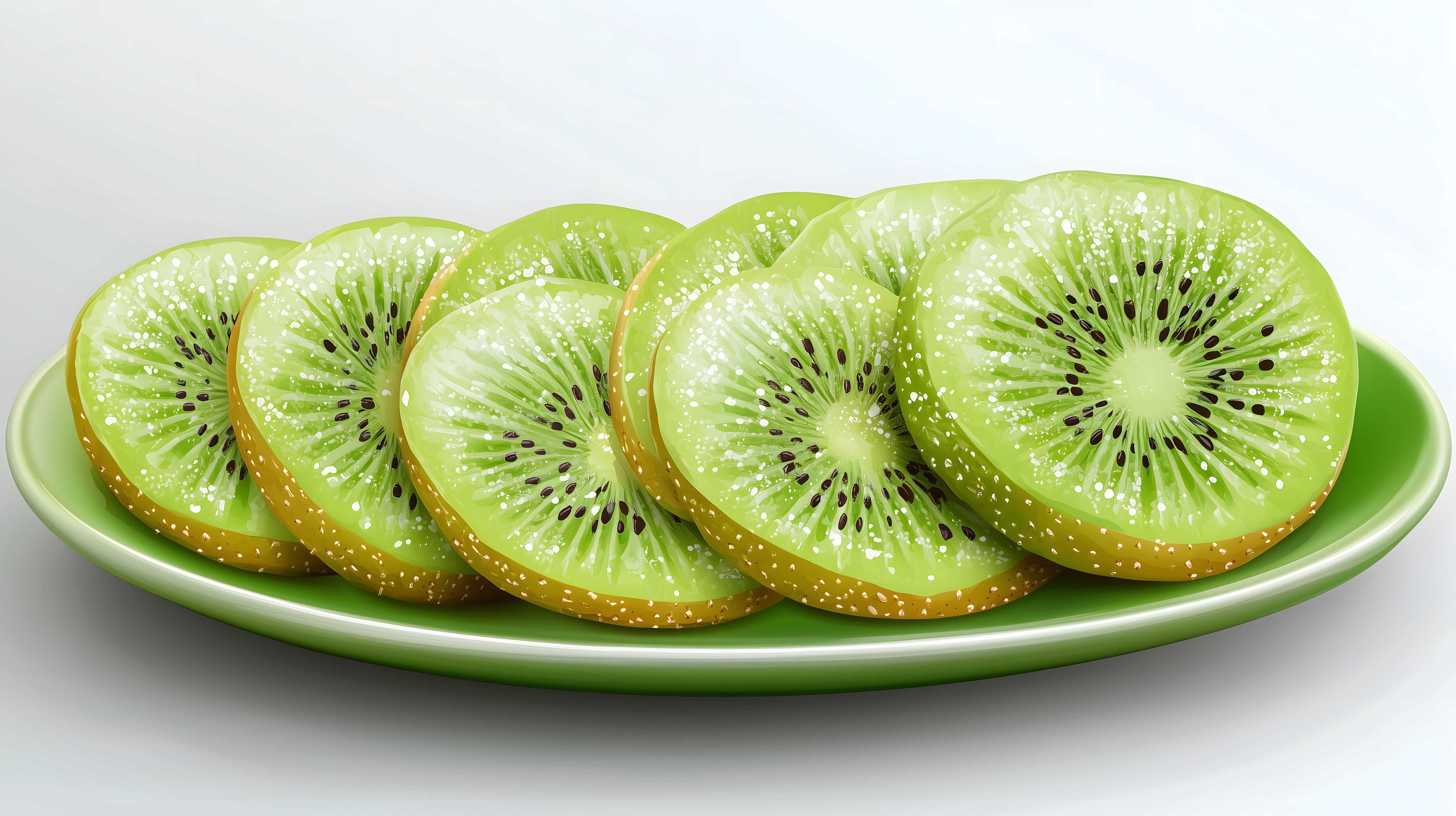 Dieses detaillierte Foto zeigt mehrere saftige, frisch geschnittene Kiwi-Scheiben auf einem schönen, grünen Teller. Die Kiwi-Scheiben leuchten in einem kräftigen Grün und bieten einen appetitlichen Anblick. Die genaue Fokussierung lässt die charakteristischen schwarzen Kerne und die Textur der Kiwi-Scheiben deutlich hervortreten. Dieses Bild eignet sich hervorragend als kostenloses Stockfoto für Blogs, Social-Media-Posts, Werbematerialien oder andere visuelle Inhalte, bei denen ein frisches, gesundes und farbenfrohes Motiv benötigt wird. Die hohe Auflösung und die Creative-Commons-Lizenzierung machen es zu einem vielseitig einsetzbaren Foto.