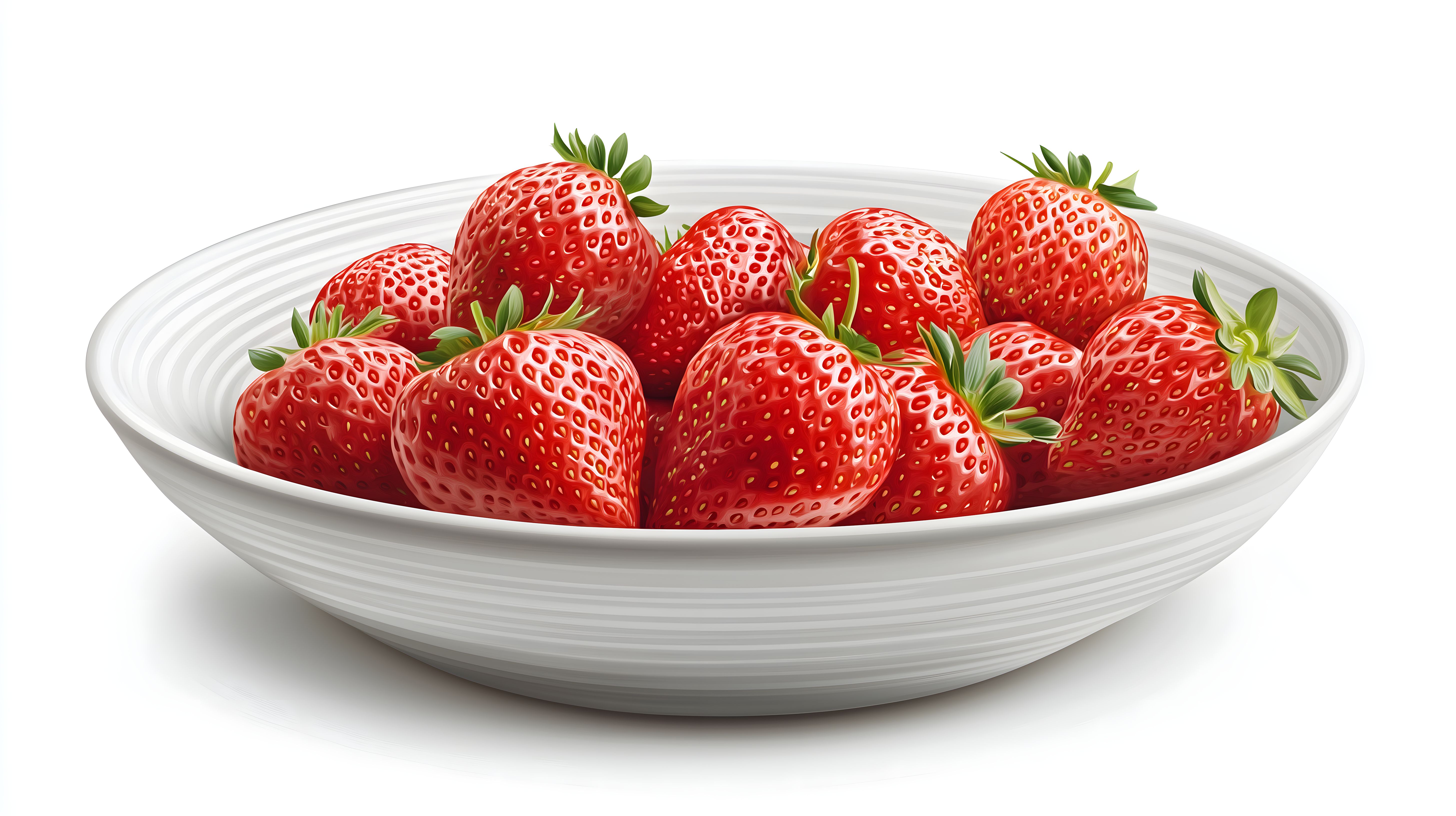 Das Bild zeigt eine Schale voller saftig-roter Erdbeeren auf weißem Grund. Die Früchte haben einen glänzenden Glanz und sind mit ihren grünen Blättern dekorativ angeordnet. Die Perspektive ist leicht von oben, was die Erdbeeren einladend und appetitlich erscheinen lässt. Dieses hochwertige Stockfoto in hoher Auflösung eignet sich hervorragend für den Einsatz in Blogs, Newslettern, Social-Media-Beiträgen oder Werbekampagnen rund um das Thema Obst, Desserts oder gesunde Ernährung. Es steht unter einer Creative-Commons-Lizenz kostenfrei zur Verfügung.