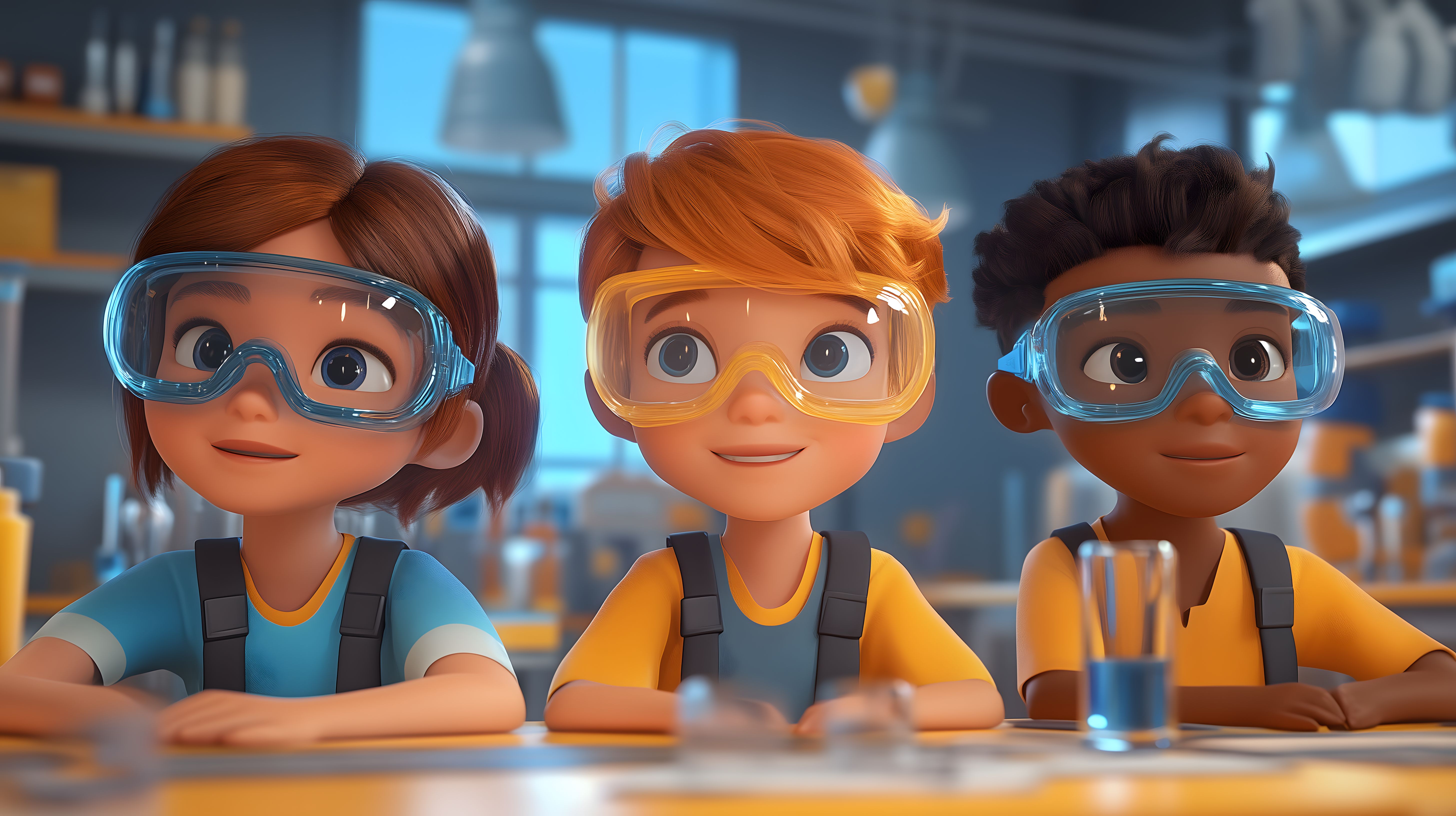 Dieses lebendige Stockfoto zeigt drei Schüler in Schutzbrillen, die in einem chemischen Labor zusammenarbeiten. Die Kinder haben lächelnde Gesichter und scheinen Spaß an ihrer Arbeit zu haben. Das Bild vermittelt einen positiven Eindruck von Teamgeist, Kreativität und der Freude an der Entdeckung. Es eignet sich hervorragend für den Einsatz in Bildungsmedien, Lernmaterialien oder Präsentationen zu MINT-Themen. Als hochauflösendes, kostenloses Stockfoto unter Creative-Commons-Lizenz steht es für eine Vielzahl von Anwendungen zur Verfügung.