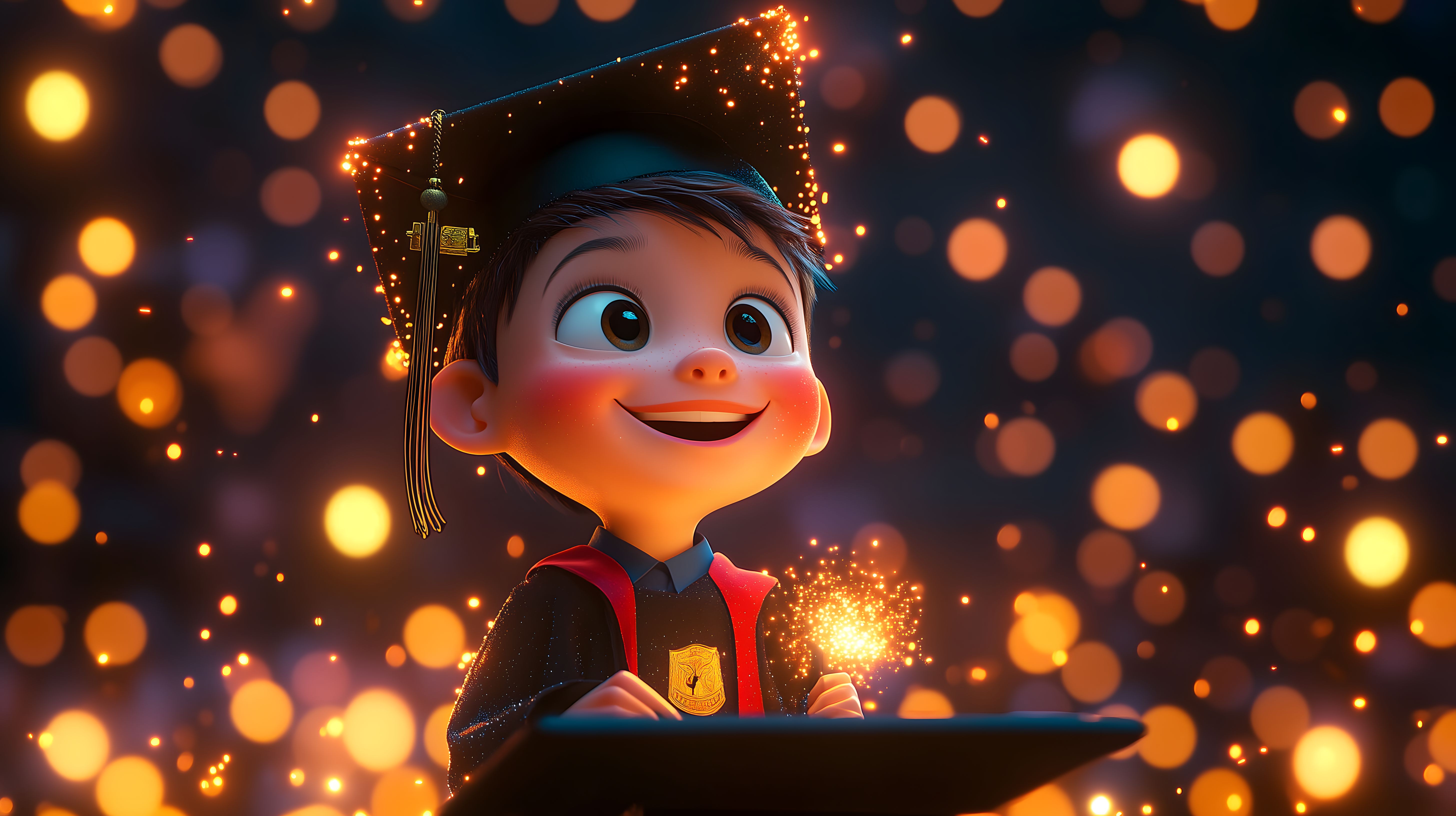 Das Foto zeigt einen jungen Mann in Absolventengewandung, der eine Rede vor einem funkelnden Hintergrund aus unscharf dargestellten Lichtpunkten hält. Der Absolvent blickt strahlend und konzentriert in die Kamera, während er seine Hände auf einem geöffneten Buch ruhen lässt. Die bunte, malerische Beleuchtung verleiht der Szene eine festliche und emotionale Stimmung und unterstreicht den Moment des persönlichen Erfolgs und der Zukunftsfreude. Dieses Stockfoto in hoher Auflösung eignet sich hervorragend für den Einsatz in Blogbeiträgen, Newsletter-Layouts oder Werbekampagnen rund um Themen wie Bildung, Studienabschluss oder Karriereambitionen. Es steht unter einer Creative-Commons-Lizenz zur kostenlosen Nutzung zur Verfügung.