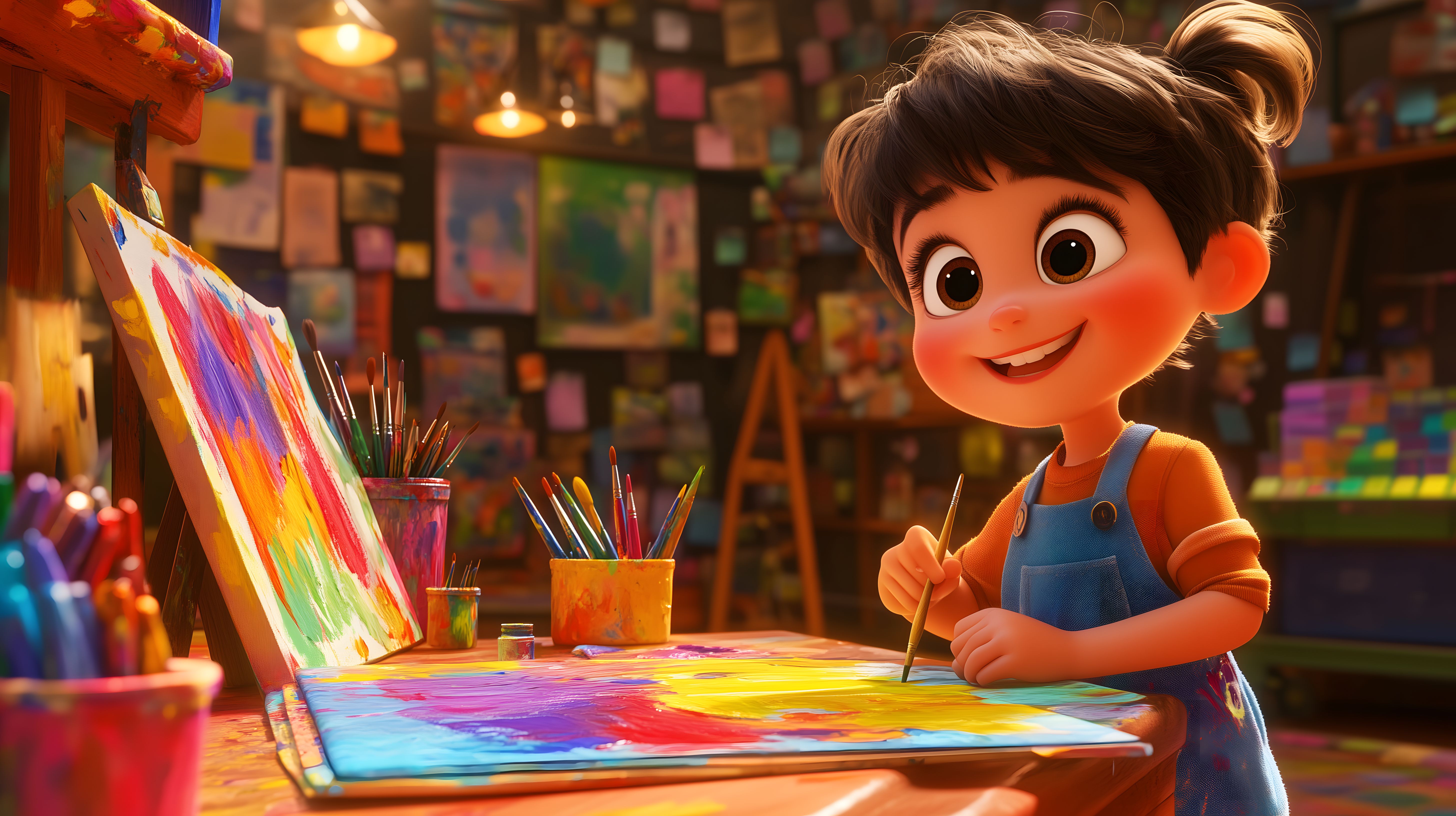 Dieses Bild zeigt ein lachendes, kreatives Kind, das eifrig an einer bunten Leinwand malt. Der Junge scheint in seiner eigenen, farbenfrohen Welt versunken zu sein und konzentriert sich ganz auf sein Kunstwerk. Der Hintergrund zeigt einen lebendigen, kunstgeladenen Raum mit vielen Gemälden, Pinseln und Zeichenmaterialien, die eine inspirierende Umgebung für das kleine Künstlerkind schaffen. Dieses stimmungsvolle Stockfoto eignet sich hervorragend für Blogbeiträge, Newsletter, Social-Media-Posts oder Werbematerialien rund um Kreativität, Kindererziehung, Kunst und Hobbys. Als kostenlose Hochauflösungsaufnahme unter Creative-Commons-Lizenz lässt es sich leicht in verschiedenen digitalen Kanälen einbinden.