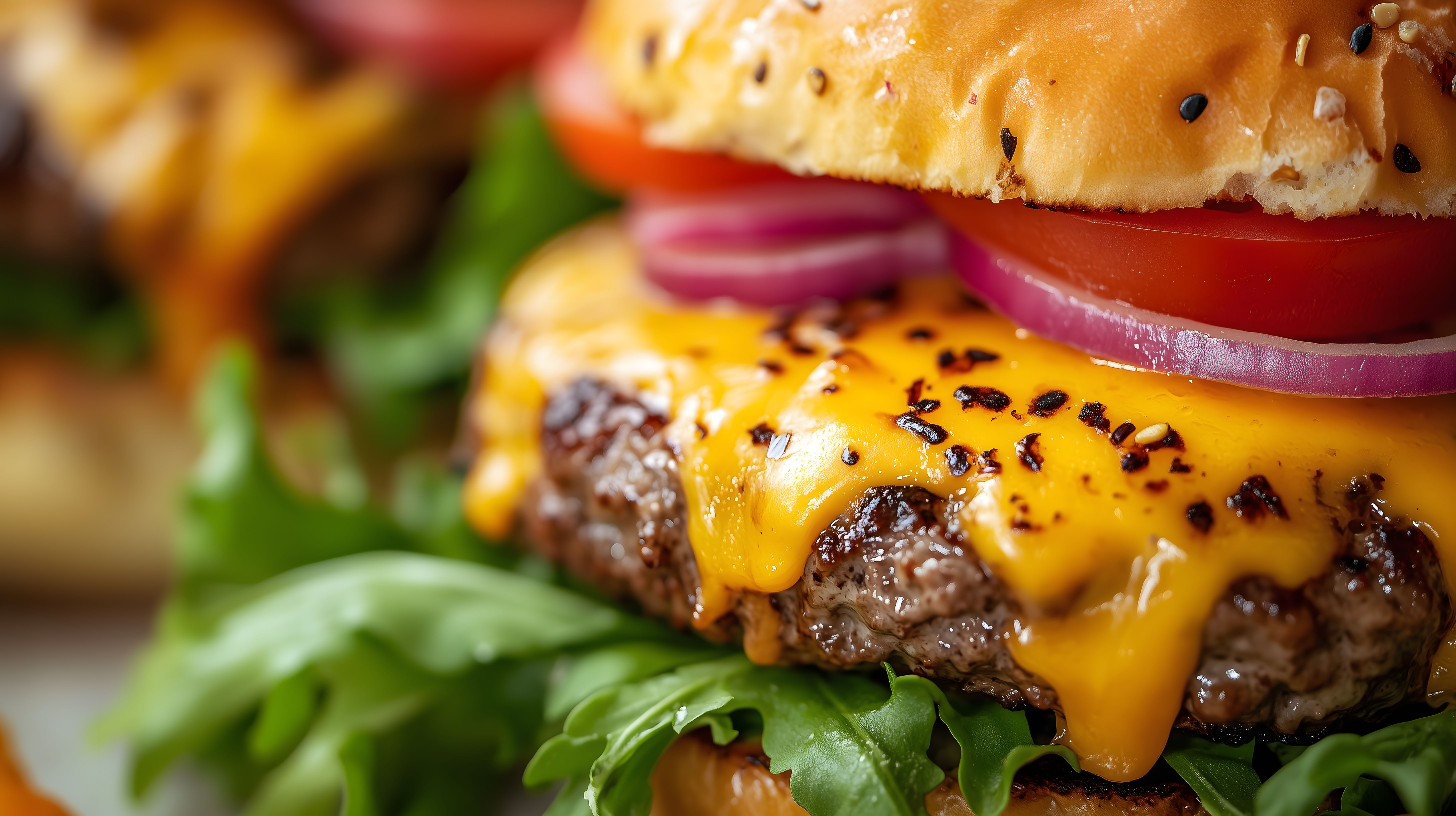 Dieses hochwertige Stockfoto zeigt eine verlockende Nahaufnahme eines frisch zubereiteten Hamburgers. Der Burger ist mit geschmolzenem Käse, saftigen Tomaten, knackigem Salat und roten Zwiebeln belegt. Die Details wie das knusprige Brötchen mit Sesamsamen und die perfekt gegrillte Fleischpatty machen den Burger zu einem echten Gaumenschmaus. Dieses Bild eignet sich hervorragend für die Verwendung in Blogbeiträgen, Newsletter-Kampagnen, Social-Media-Posts oder Werbematerialien im Bereich Gastronomie und Lebensmittel. Das hochauflösende Foto steht unter einer Creative-Commons-Lizenz kostenlos zum Download zur Verfügung.