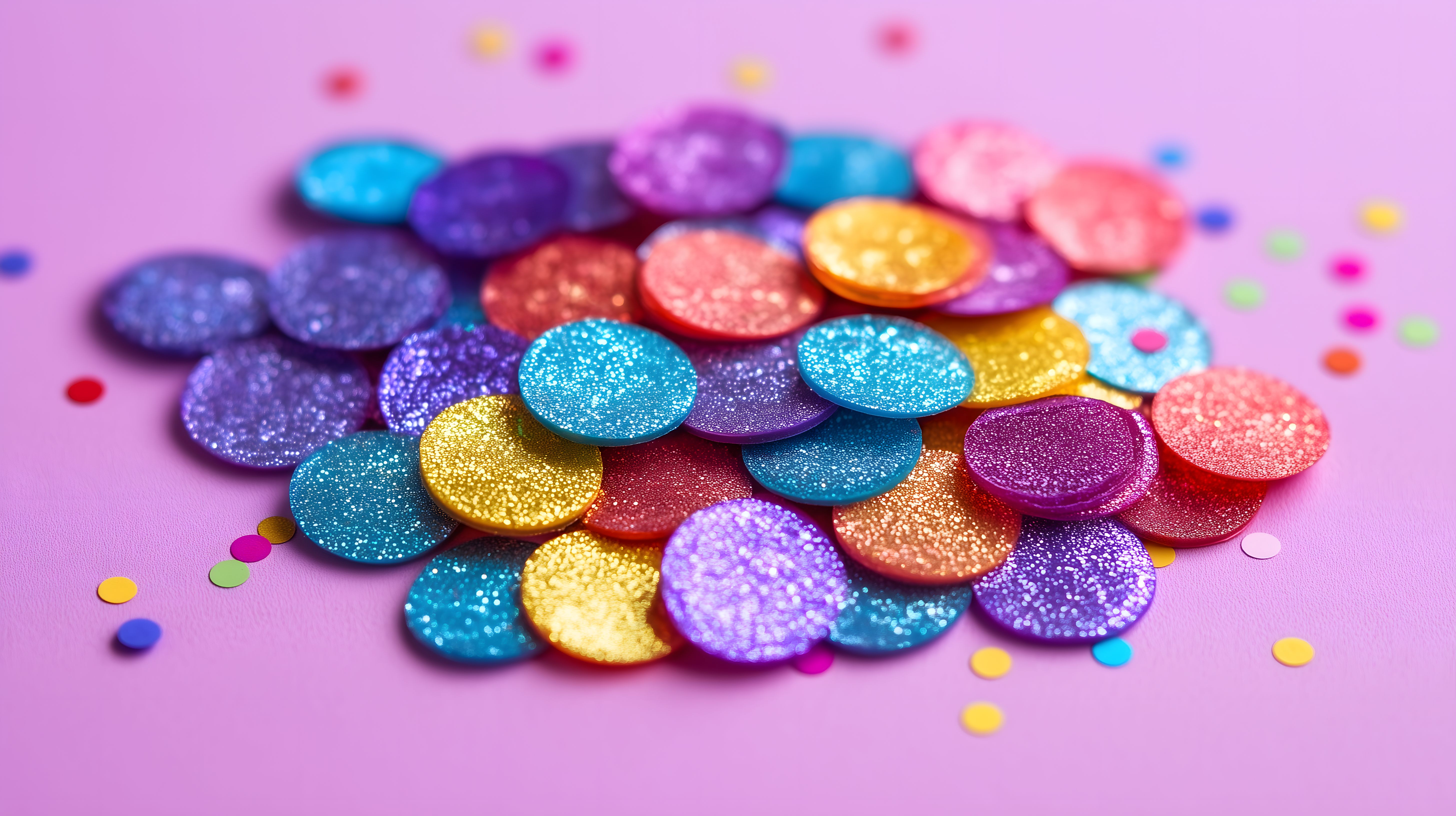 Das Bild zeigt eine bunte Ansammlung von leuchtenden Konfetti-Scheiben in verschiedensten Farben und Formen auf einem rosa Hintergrund. Die Konfetti sind glänzend und spiegeln das Licht, was dem Motiv eine dynamische, festliche Ausstrahlung verleiht. Das Foto eignet sich hervorragend als kostenloses Stockfoto für kreative Projekte wie Blogs, Newsletter, Social-Media-Beiträge oder Werbematerialien. Es ist in hoher Auflösung und unter einer Creative-Commons-Lizenz verfügbar.