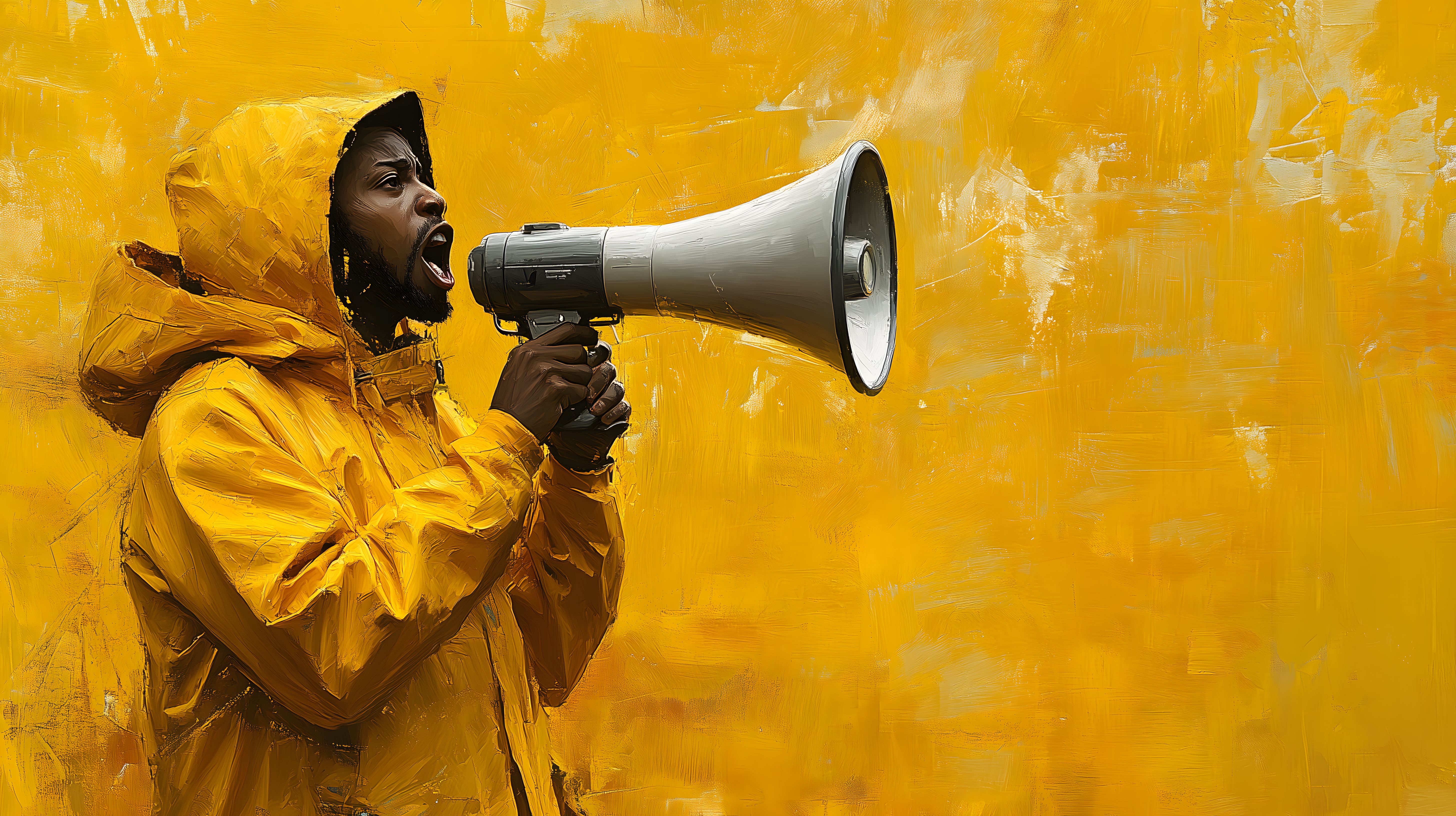 Das Bild zeigt einen Mann in einer gelben Jacke, der ein Megafon in der Hand hält und scheinbar lautstark etwas verkündet oder ruft. Der Hintergrund ist in einem satten, leuchtenden Gelb gehalten, was dem Bild eine dynamische und energiegeladene Stimmung verleiht. Die Szene könnte für verschiedene Zwecke eingesetzt werden, beispielsweise in der Werbung, für Social-Media-Beiträge oder Blogeinträge, die Themen wie Motivation, Führung, Kommunikation oder Aktivismus behandeln. Als kostenloses Stockfoto in hoher Auflösung und unter einer Creative-Commons-Lizenz verfügbar, eignet sich dieses Bild für eine Vielzahl von Projekten.