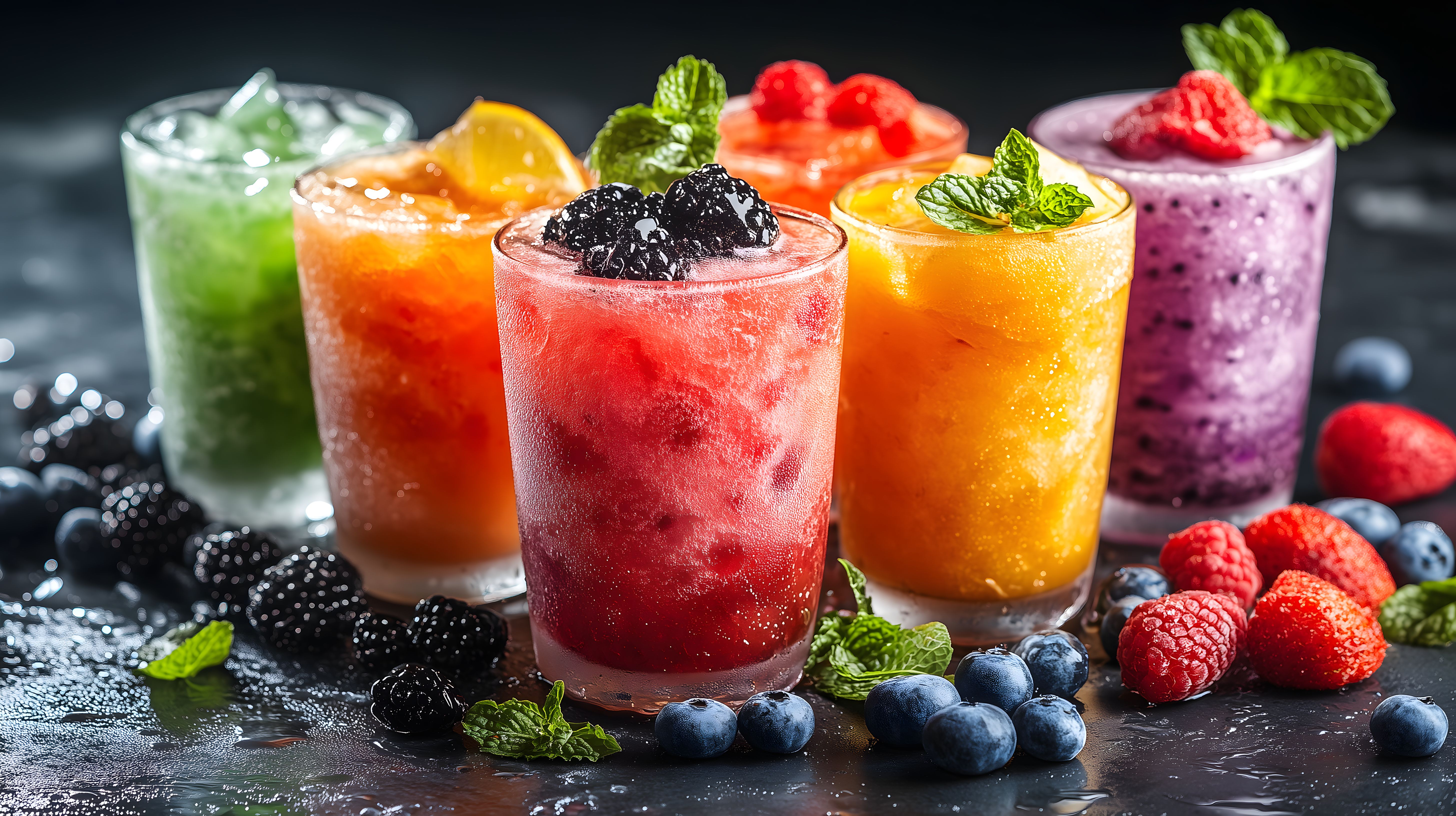 Das Bild zeigt eine Auswahl an frischen und erfrischenden Sommershakes in farbenfrohen Gläsern. Die Getränke enthalten eine Vielzahl an saisonalen Zutaten wie Früchte, Beeren und Minzblätter, die eine gesunde und vitaminreiche Erfrischung versprechen. Die Komposition ist stilvoll und lädt zum Genuss an heißen Sommertagen ein. Dieses hochaufgelöste Stockfoto ist unter einer Creative Commons-Lizenz frei verwendbar, zum Beispiel für Blogbeiträge, Social-Media-Veröffentlichungen oder Werbematerial.