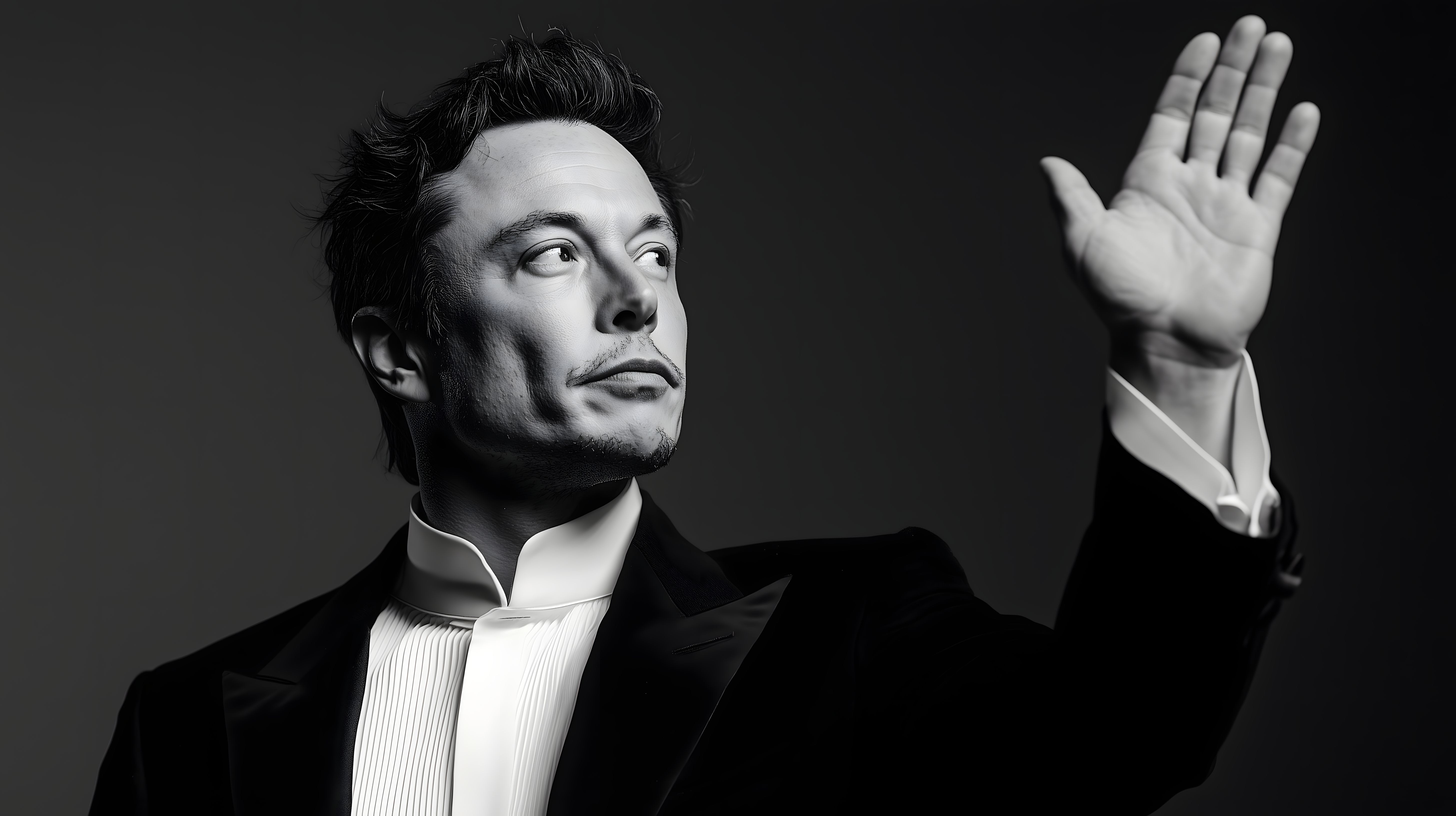 Dieses eindrucksvolle Schwarz-Weiß-Foto zeigt einen eleganten Mann im klassischen Anzug, der mit erhobener Hand nach vorne blickt. Die Perspektive und Komposition verleihen dem Bild eine starke, selbstbewusste Ausstrahlung. Perfekt geeignet als Titelbild oder Eye-Catcher für Websites, Werbung, Zeitschriften oder Präsentationen im Business-Bereich. Dieses hochauflösende Stockfoto steht unter der Creative-Commons-Lizenz kostenlos zum Download zur Verfügung.