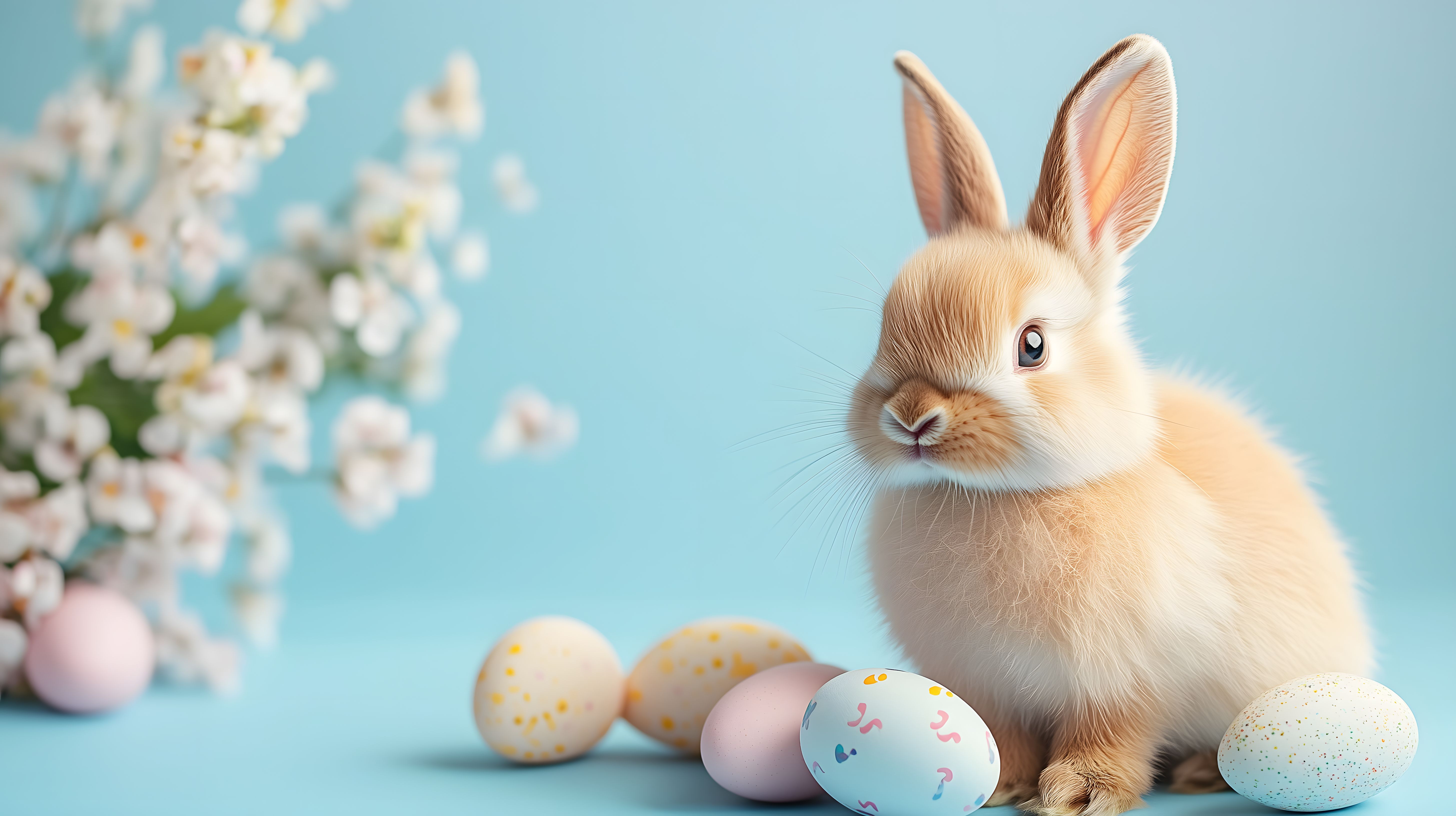 Dieses liebenswerte Foto zeigt einen flauschigen Osterhasen, der inmitten einer Reihe bunt bemalter Ostereier sitzt. Der Hase hat ein sanftes, aufmerksames Gesichtsausdruck und passt farblich perfekt zu den umliegenden Eiern in Pastelltönen. Die Komposition ist stimmungsvoll und symmetrisch. Dieses hochauflösende Bild eignet sich hervorragend als kostenloses Stockfoto für Frühlingsdekorationen, Ostergrußkarten, Werbematerialien oder Social-Media-Beiträge. Die freie Lizenz ermöglicht eine vielseitige und kreative Verwendung.