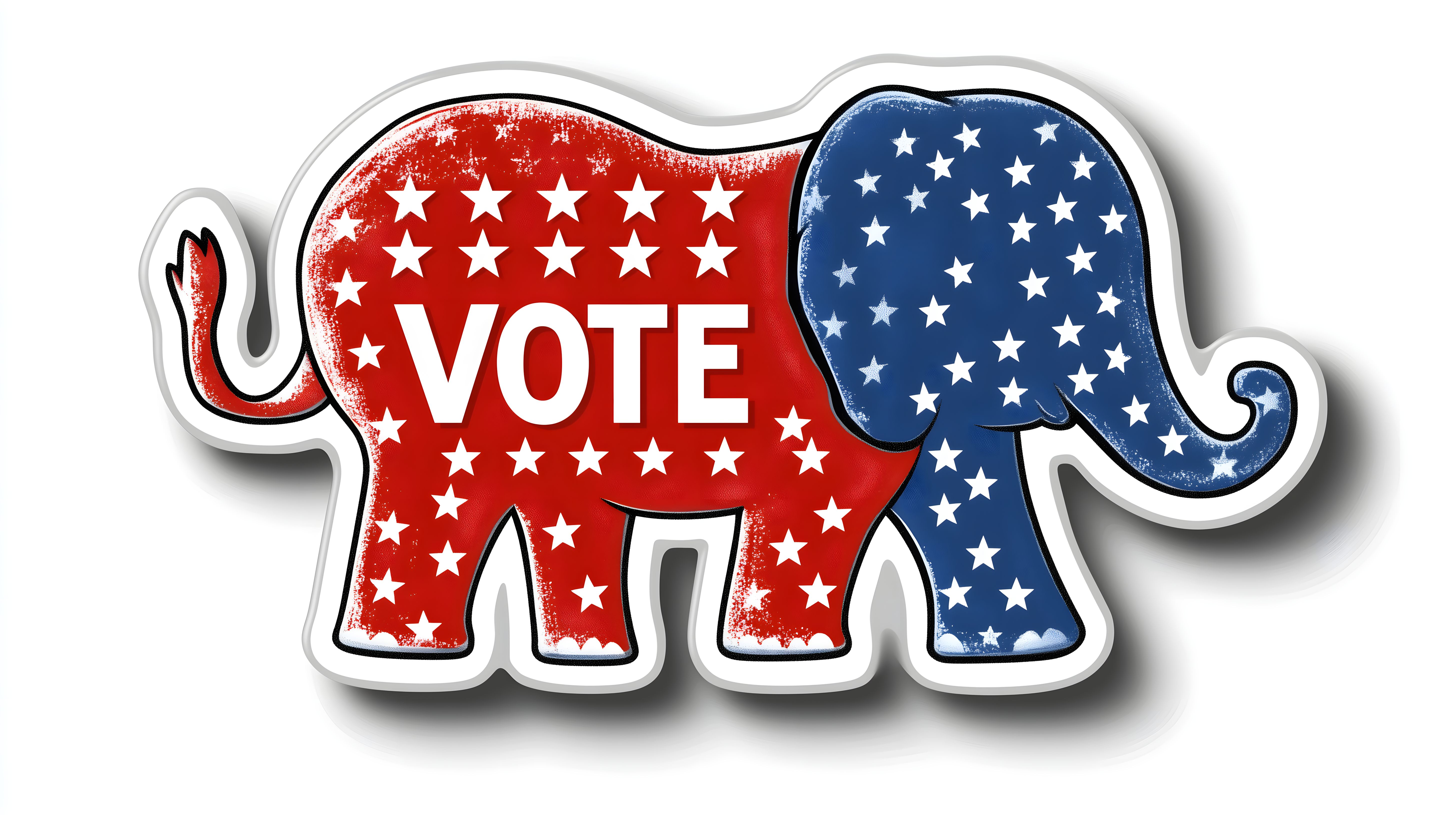 Dieses Bild zeigt ein grafisches Symbol für den Wahlkampf in den USA. Es stellt einen stilisierten Elefanten dar, der traditionell das Symbol der Republikanischen Partei ist. Der Elefant ist in den patriotischen Farben Blau und Rot gehalten und mit weißen Sternen übersät, die an die Flagge der Vereinigten Staaten erinnern. Darüber prangt in großen Buchstaben der Aufruf 'VOTE', also 'Wähle'. Dieses Bild könnte ideal für Anwendungen wie politische Blogs, Wahlkampagnen in sozialen Medien oder Newsletter zum Thema Demokratie eingesetzt werden. Als kostenloses Stockfoto in hoher Auflösung und unter einer Creative-Commons-Lizenz eignet es sich hervorragend für verschiedenste Zwecke.