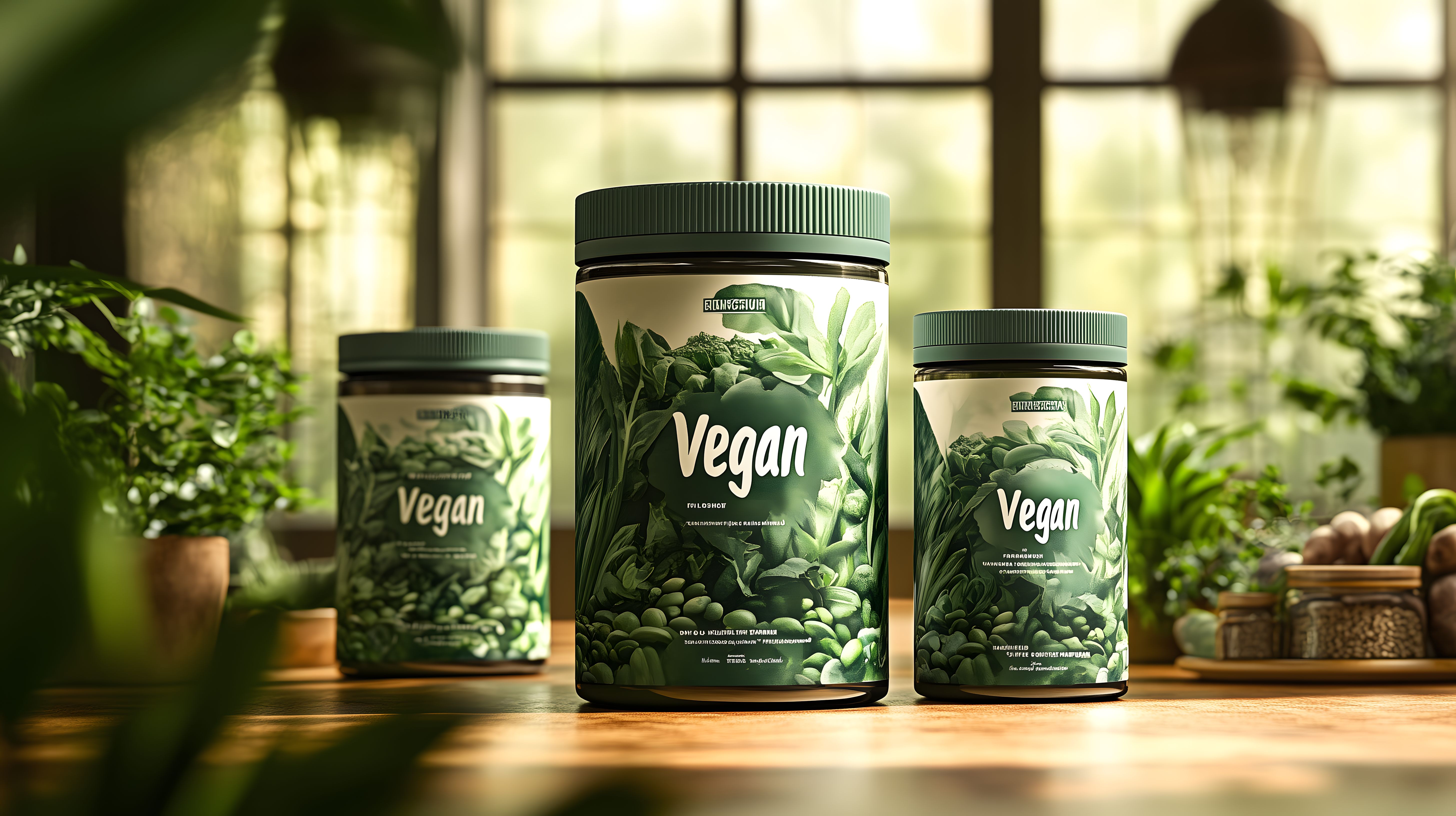 Dieses Foto zeigt mehrere Glasdosen mit Bio-Eiweißpulver in einem natürlichen Grüntönen. Die Verpackungen tragen ein elegant gestaltetes Blattmotiv, das eine ökologische und gesundheitsbewusste Marke vermittelt. Die Dosen stehen auf einem hölzernen Untergrund vor einem Fenster, umgeben von üppiger Vegetation. Dieses Stockfoto eignet sich hervorragend für die Verwendung in Blogs, Newslettern oder Social-Media-Beiträgen zum Thema Nahrungsergänzung, Fitnessstudio, Wellness oder nachhaltige Produkte. Das Foto ist in hoher Auflösung und unter einer Creative-Commons-Lizenz verfügbar.