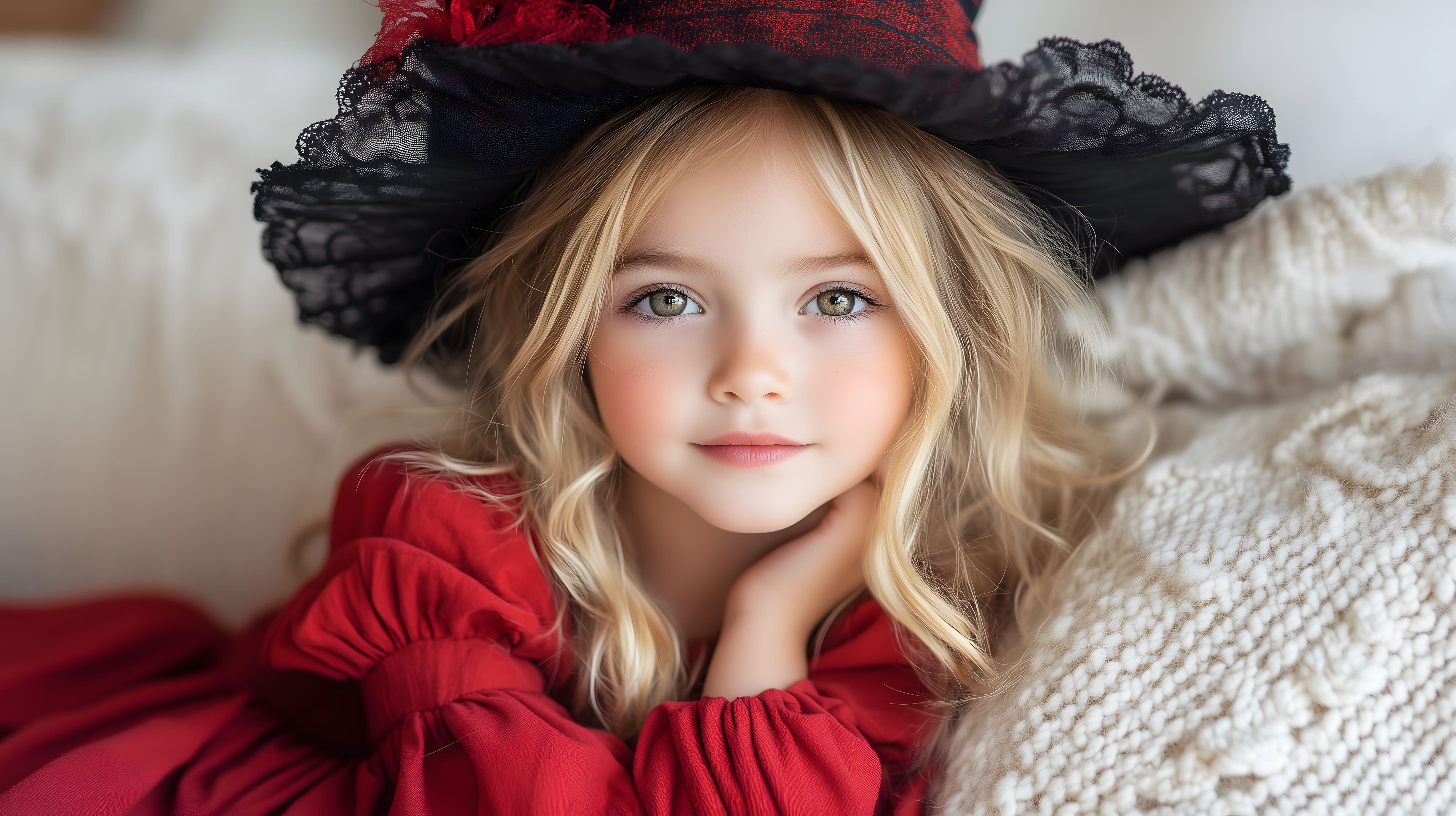 Dieses charmante Foto zeigt ein junges Mädchen in einem roten, voluminösen Kleid und einem schwarzen Spitzenhut. Mit ihren blonden, lockigen Haaren und dem sanften Lächeln strahlt sie eine anmutige, fast märchenhafte Ausstrahlung aus. Die stimmungsvolle Beleuchtung und der weiche, gemütliche Hintergrund unterstreichen den atmosphärischen Charakter des Bildes. Das Motiv eignet sich hervorragend für den Einsatz in Blogs, Newslettern, Social-Media-Beiträgen und Werbekampagnen, die ein romantisches, kreatives oder kinderfreundliches Flair vermitteln möchten. Als hochauflösendes Stockfoto unter einer Creative-Commons-Lizenz ist es für vielfältige Zwecke kostenlos nutzbar.