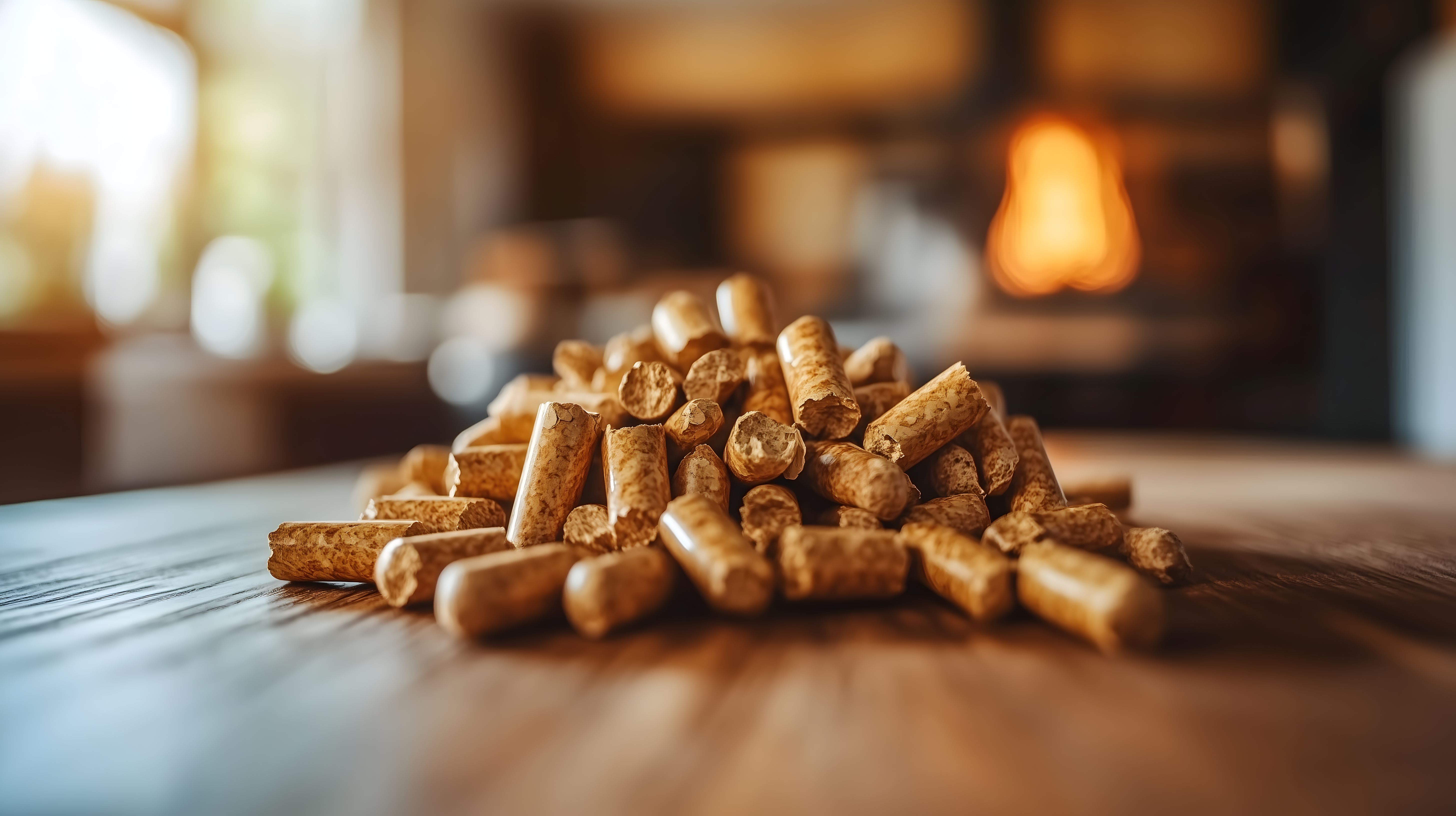 Das Bild zeigt einen Haufen brauner Holzpellets auf einem hölzernen Tisch vor einem unscharfen, warmen Hintergrund. Die Holzpellets sind eine nachhaltige Brennstoffquelle, die in Öfen, Kaminen und Heizungen verwendet werden können. Durch ihre kompakte Form und hohe Energiedichte sind Holzpellets eine effiziente und umweltfreundliche Alternative zu fossilen Brennstoffen. Das Foto kann perfekt für Blogs, Newsletter, Social-Media-Posts oder Werbematerialien rund um Nachhaltigkeit, Energie und Heizungssysteme eingesetzt werden. Das hochauflösende Stockfoto steht unter einer Creative-Commons-Lizenz zur kostenlosen Nutzung zur Verfügung.