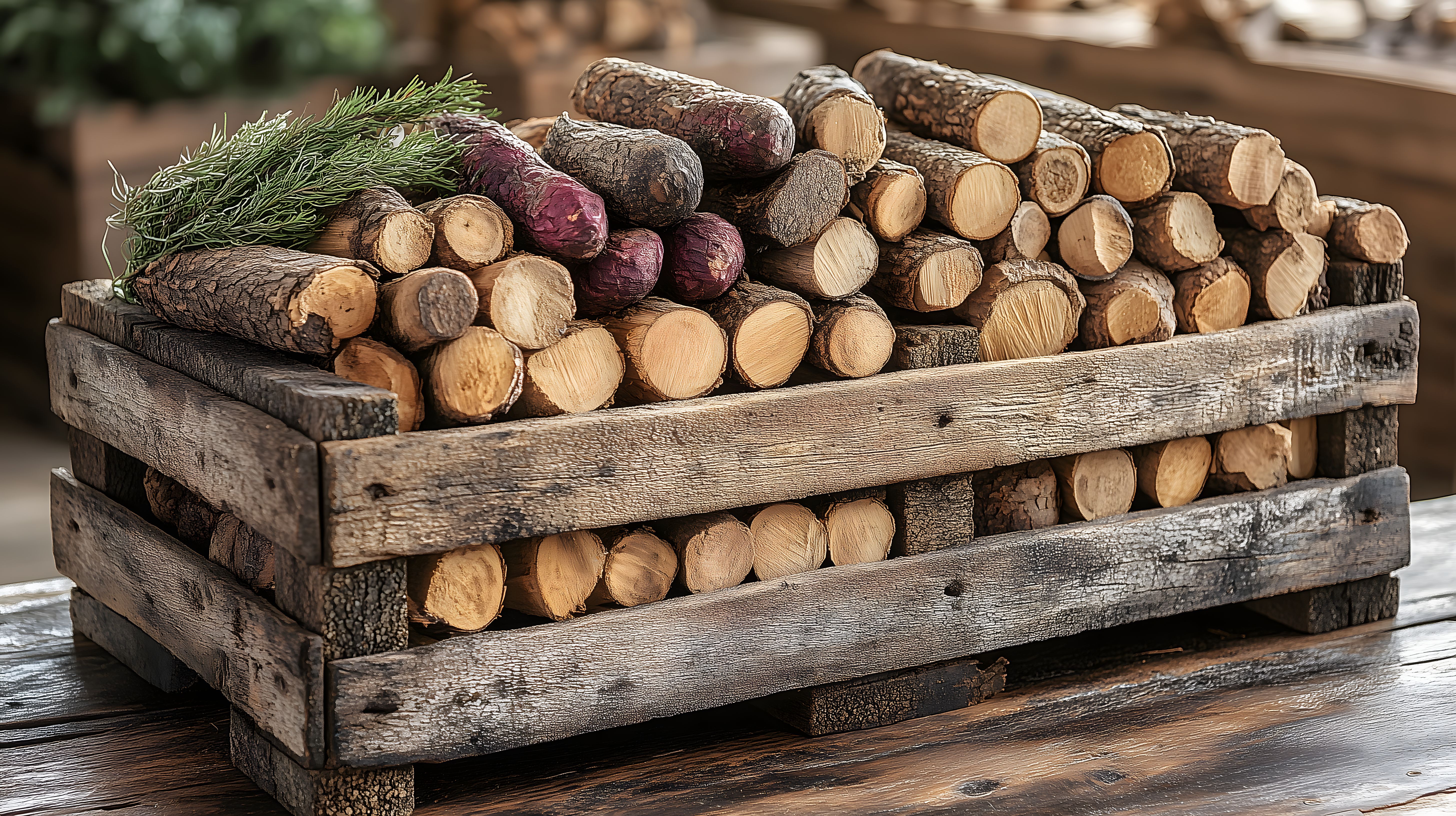 Dieses Stockfoto zeigt eine rustikale Holzkiste, die mit verschiedenen Holzscheiten und -stöcken gefüllt ist. Die Kiste steht auf einem Holzuntergrund und vermittelt einen traditionellen, ländlichen Charakter. Die Holzkiste und das Brennholz sind in warmen Brauntönen gehalten und wirken natürlich und gemütlich. Dieses Bild eignet sich ideal als Hintergrundbild für Blogs, Newsletter oder soziale Medien, die eine rustikale, herbstliche oder winterliche Stimmung transportieren möchten. Das hochauflösende Foto ist kostenfrei unter einer Creative-Commons-Lizenz verfügbar.