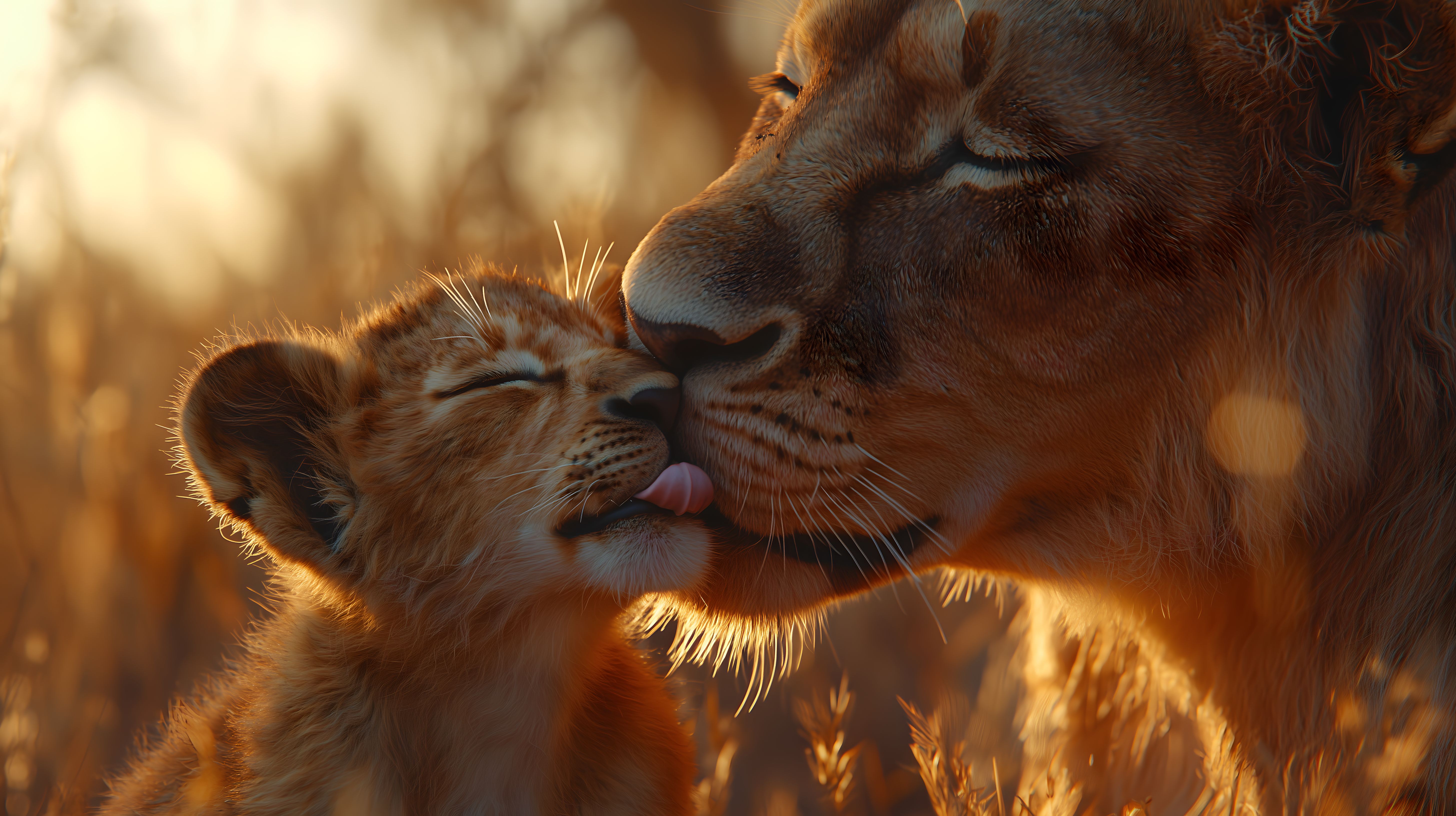 Dieses wundervolle Foto zeigt eine liebevolle Löwenmutter, die zärtlich mit ihrem niedlichen Jungtier kuschelt. Die Tiere sind in einem warmen, goldenen Licht getaucht, das eine friedliche und idyllische Stimmung erzeugt. Die detailreiche Nahaufnahme lässt die Zärtlichkeit und Fürsorge der Mutter gegenüber ihrem Nachwuchs besonders gut erkennen. Dieses hochauflösende Stockfoto in hervorragender Qualität ist perfekt für den Einsatz in Blogs, Newslettern, Social-Media-Beiträgen oder Werbekampagnen rund um Themen wie Tierwelt, Naturschutz oder Tierfamilien. Es steht unter einer Creative-Commons-Lizenz zur Verfügung und kann kostenlos genutzt werden.